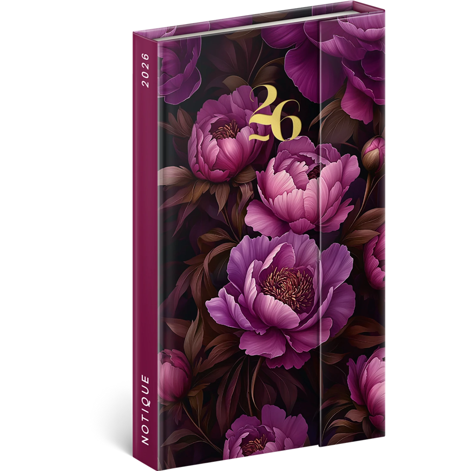 Határidőnapló Purple Flowers – mágneses zárással, fehér lapokkal, Realsystem