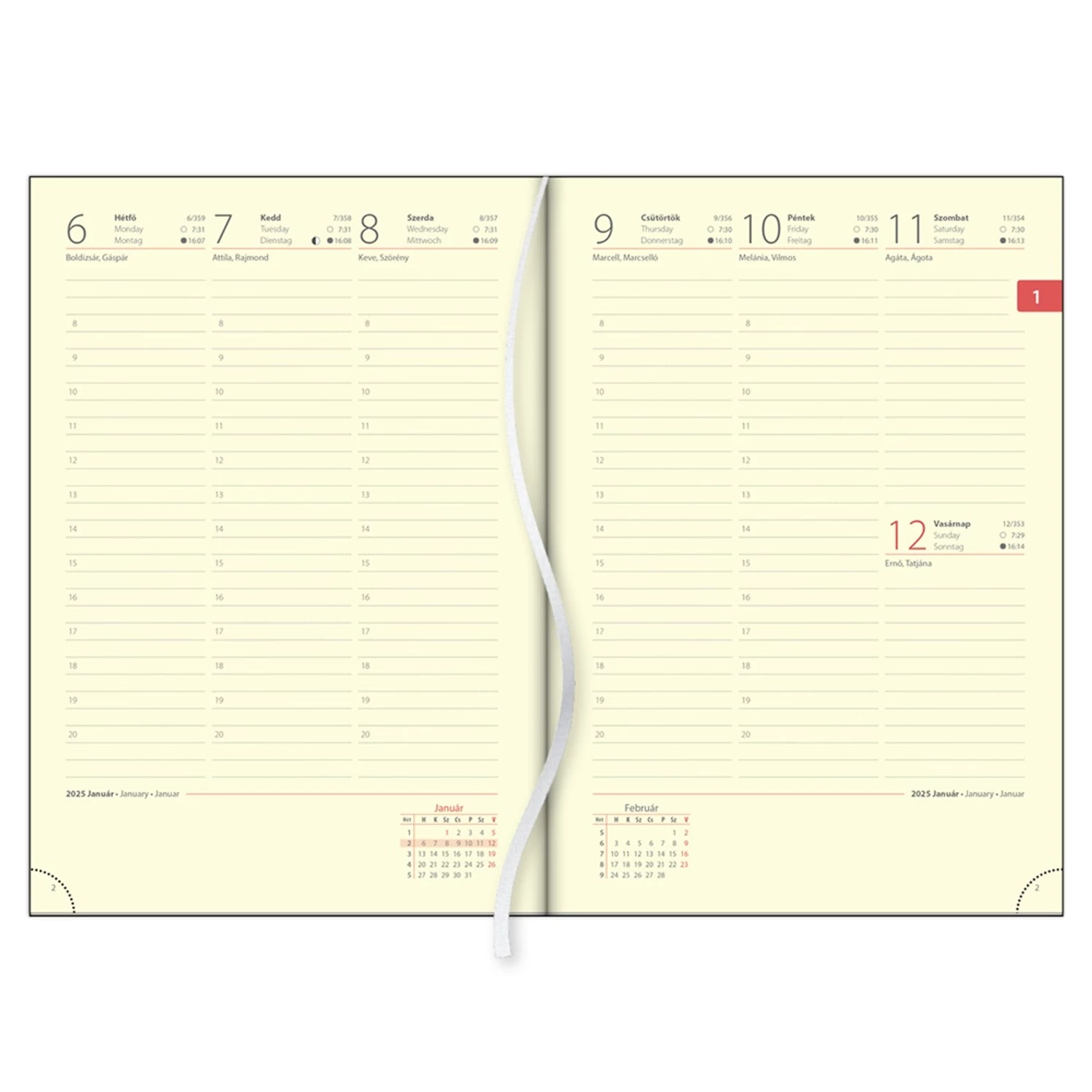 Határidőnapló Sherwood A5 napi, krémszínű lapokkal Dayliner A Sherwood határidőnapló elegáns és praktikus megoldás a napi tervezéshez. Finoman strukturált, bőrhatású anyagból készült borítója kontrasztos varrással díszített, amely stílust és prémium érzetet kölcsönöz a terméknek. Funkciók: