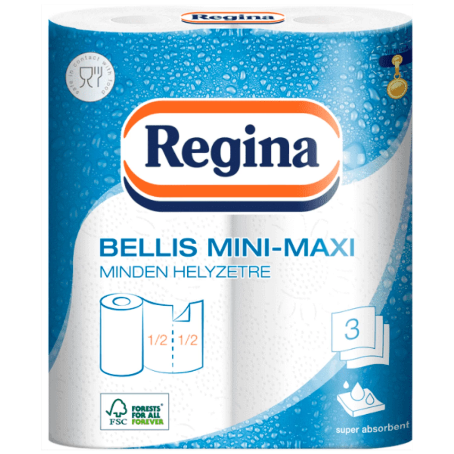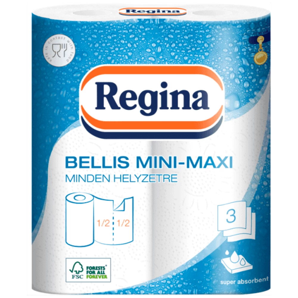 Háztartási papírtörlő kéztörlő 3 rétegű 100 lap/tekercs 2 tekercs/csomag Bellis Mini-Maxi fehér