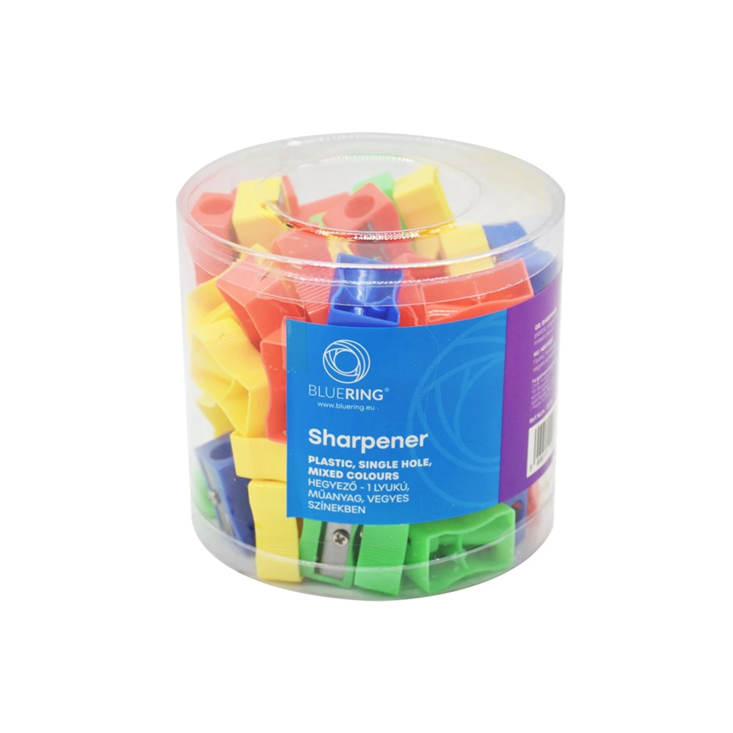 A Bluering® műanyag hegyező egy egyszerű, ugyanakkor hatékony kialakítású írószer, amely egy lyukas megoldással működik. Ez az egyetlen lyuk a standard méretű grafitceruzákhoz és a legtöbb színes ceruzához készült, így széles körű felhasználási lehetőséget biztosít. A hegyező teste könnyű, masszív műanyagból készül, amely jól ellenáll a mindennapi használatnak, eséseknek vagy táskában való szállításnak.