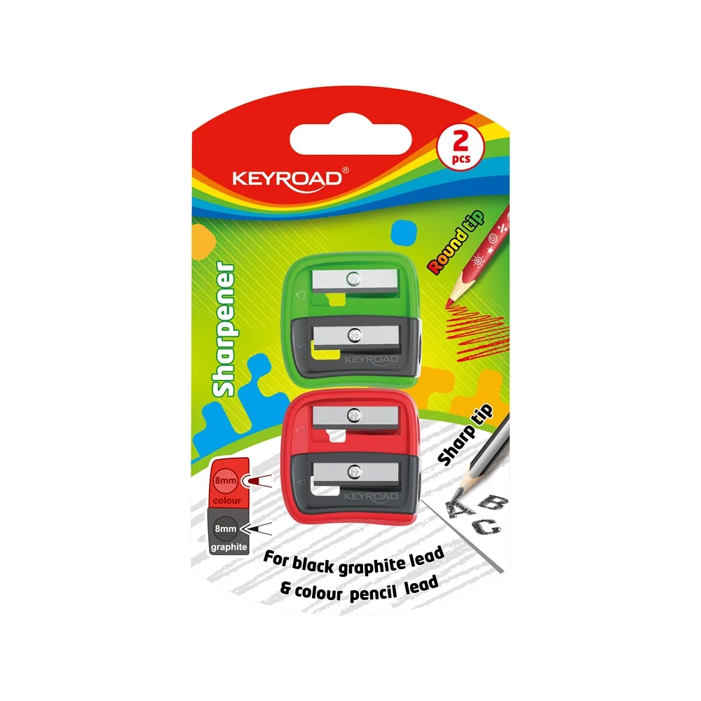 Hegyező, 2 lyukú, 2 db/bliszter, Keyroad Dou-Power, vegyes színek