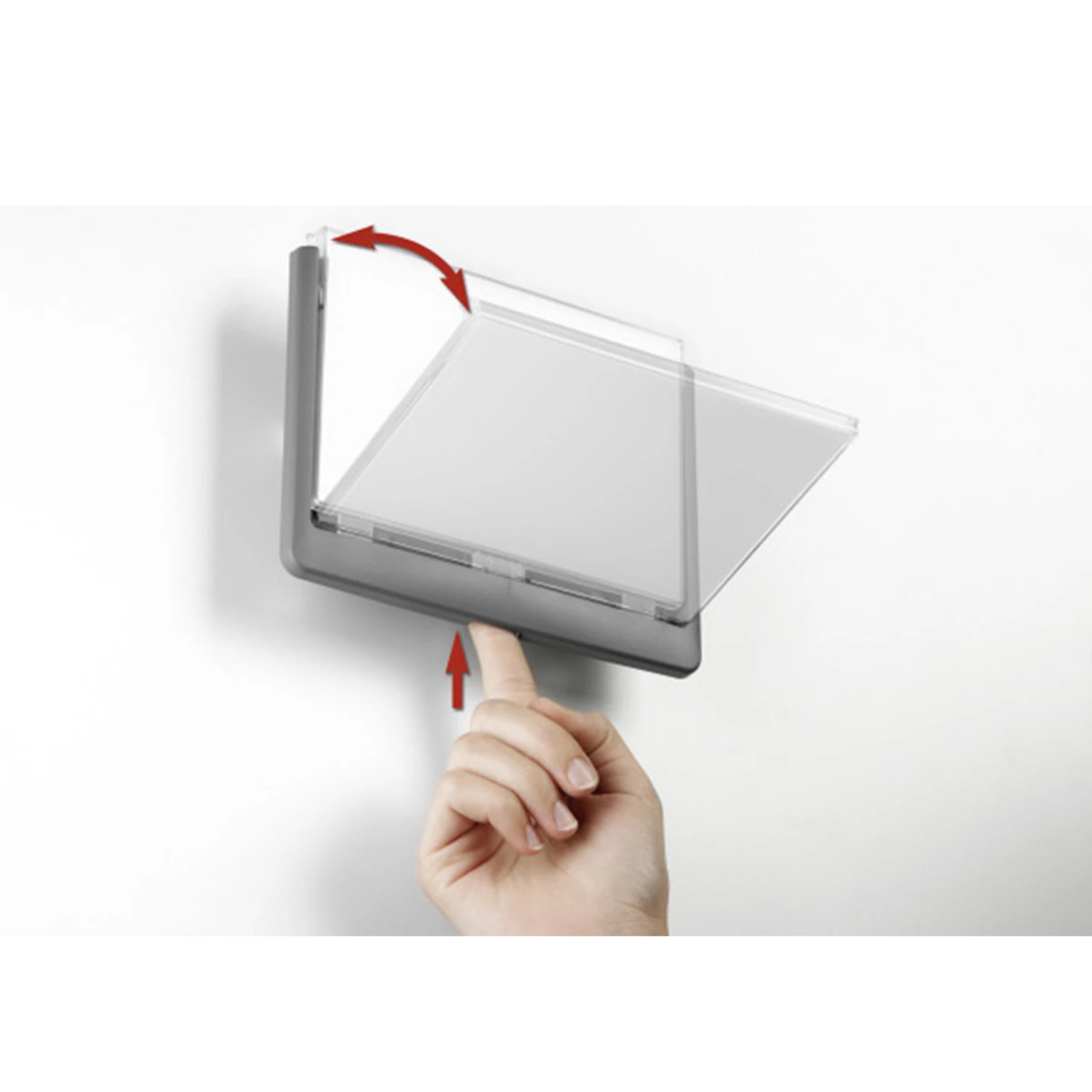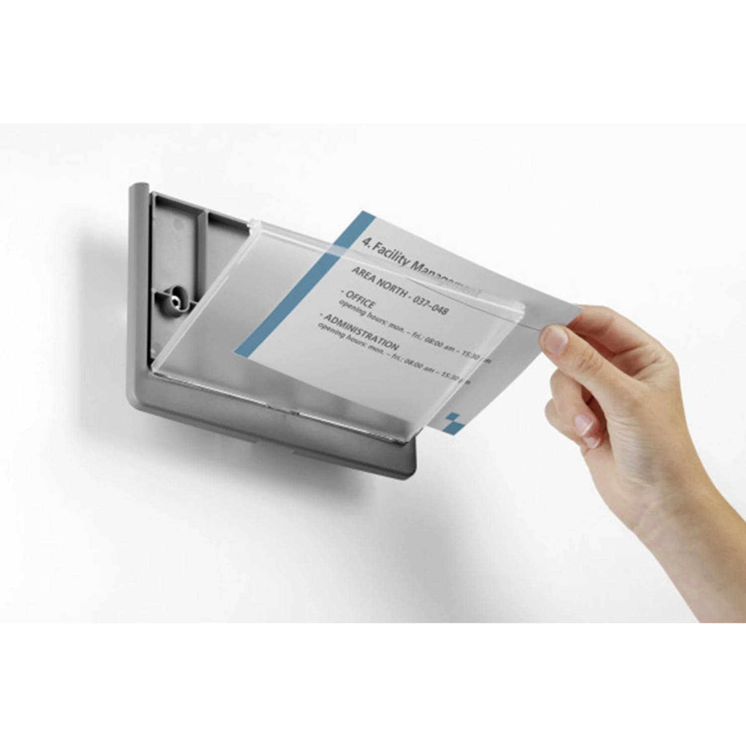 Információs tábla, stílusosan megtervezett, lekerekített sarkokkal, így a modern design funkcióval párosul. Az insertek könnyedén cserélhetők a frontpanel megemelésével és leeresztésével. Ideális megoldás olyan helyeken, ahol az információkat gyakran kell cserélni, mint például hotelekben, konferencia termekben. A tábla csavarokkal, vagy öntapadó felülettel rögzíthető. Nyomtatható insertek kaphatók. Katalóguskód: 18913 Hiteles tájékoztatás: Elkötelezettek vagyunk termékeink biztonságának garantálásáért, nyomon követjük a termékbiztonsággal kapcsolatos valamennyi európai uniós és hazai szabályozást és biztosítjuk termékeink azoknak történő megfelelését. Az EU 2023/988-as számú Általános Termékbiztonsági Rendeletét (GPSR) is alkalmazzuk, így ha a termékeink biztonságát illetően fogyasztóként kérdése, észrevétele van, vagy esetleg balesetről van tudomása, kérjük, írja meg nekünk. GPSR: DURABLE Hunke & Jochheim GmbH & Co. KG Westfalenstrasse 77-79, D- 58636 Iserlohn, Germany info@durable.de www.durable.de