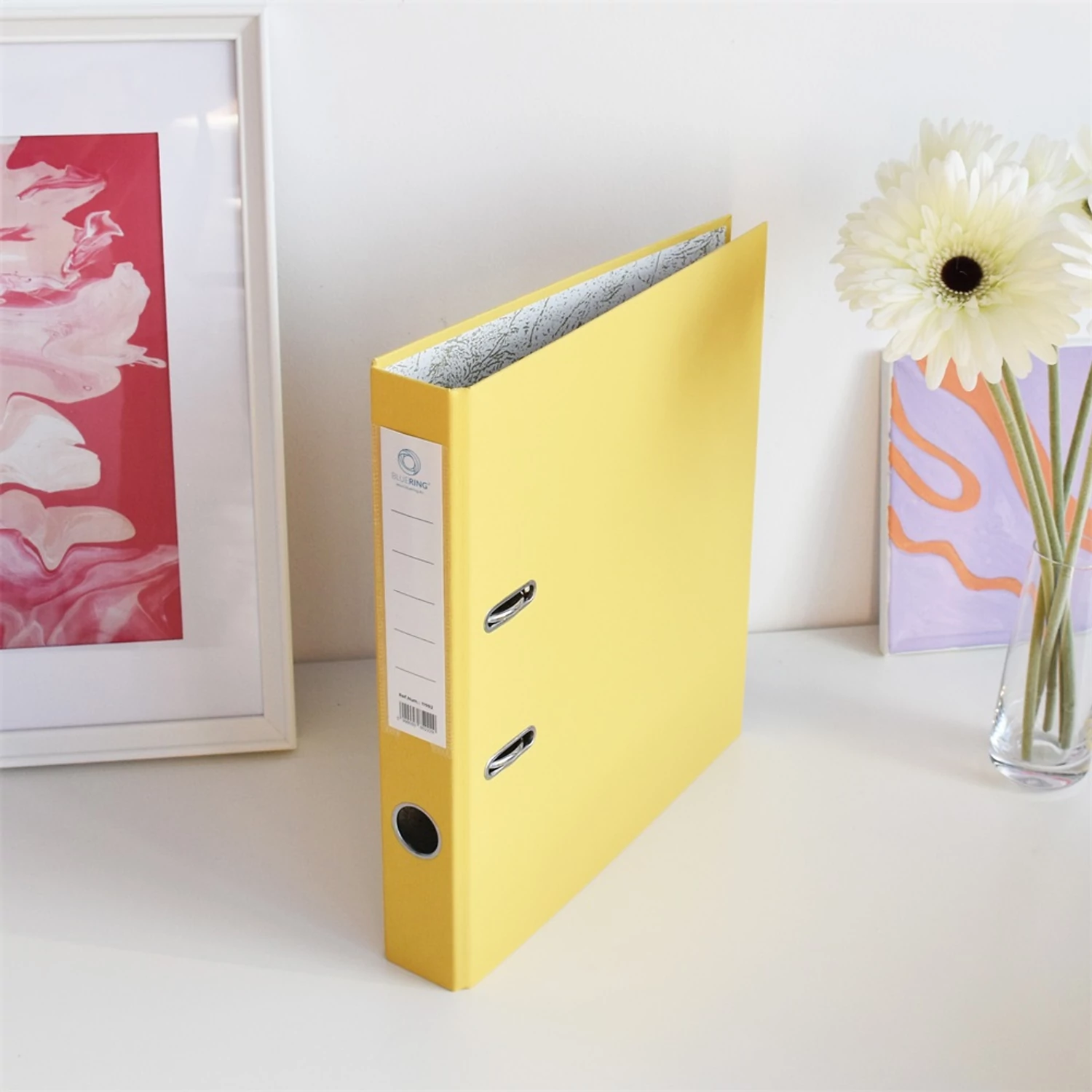 Emelőkaros iratrendező általános használatra. Kívül PP, belül fehér karton borítással, kihúzólyukkal. Cserélhető gerinccímke a feliratozáshoz. Tárolókapacitás 350 lap (A4 80gr.) Gyűjtő: 25 db/doboz.