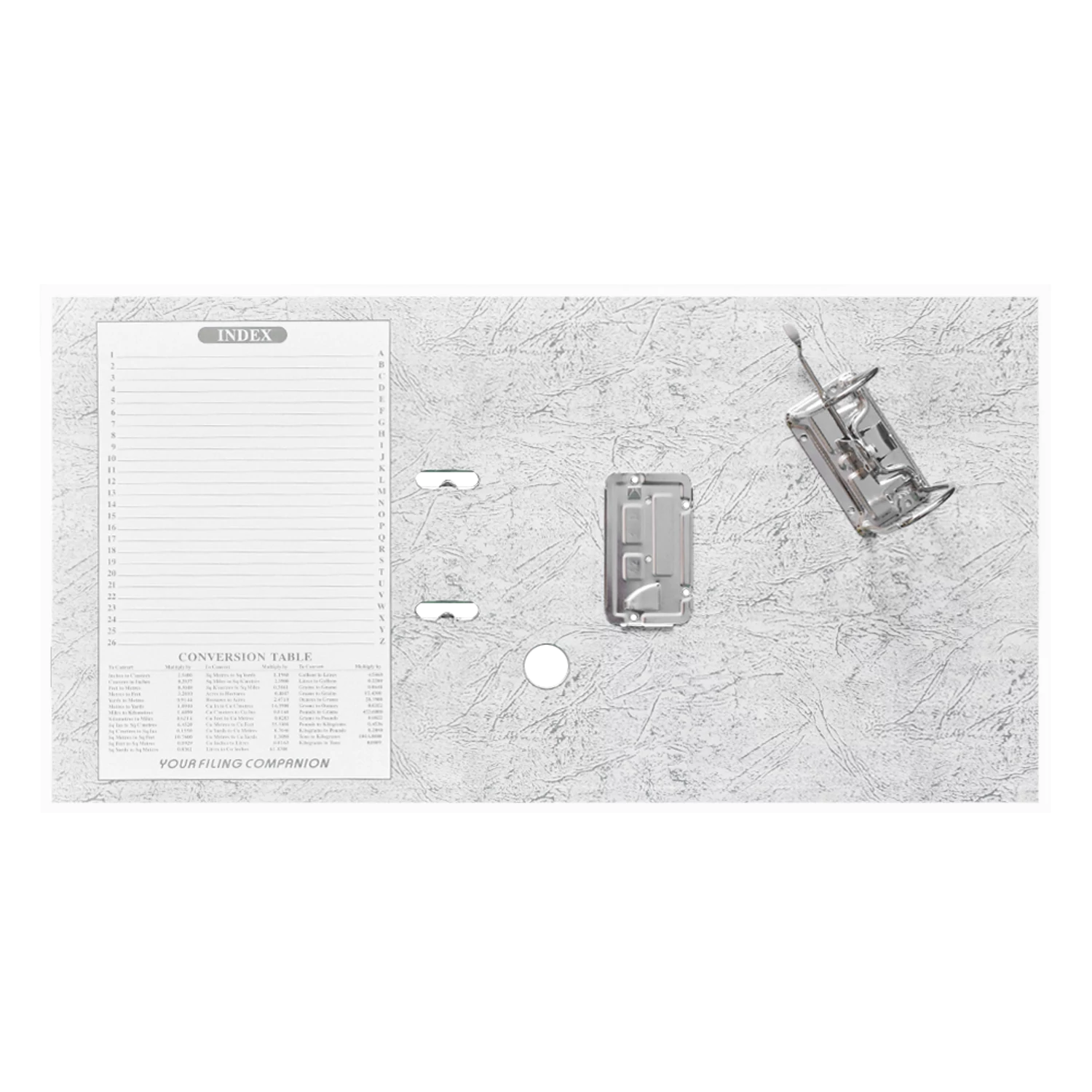 A belső mechanika jellemzően stabil lefűző-megoldást kínál (karos/gyűrűs rendszerrel), hogy a lyukasztott dokumentumok fixen a helyükön maradjanak. A gerincen általában helyet találsz címkének vagy címketartónak, így gyorsan azonosíthatod, melyik mappa milyen témát, időszakot vagy projektet rejt.