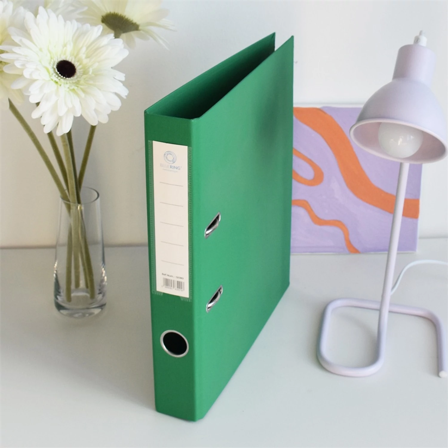 A zöld iratrendező jól elkülönül, mégsem túl harsány – tökéletes egy kiegyensúlyozott irodai környezethez.