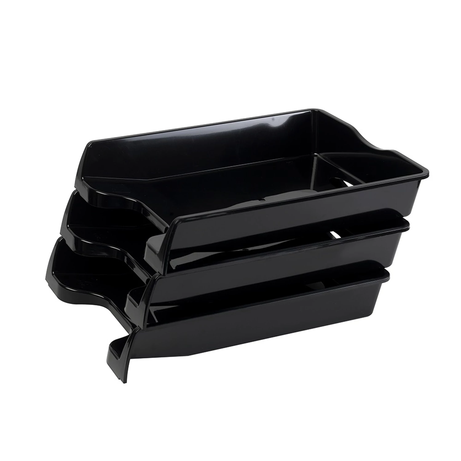 A fekete, letisztult megjelenés mind céges, mind otthoni környezetben jól működik. Nem hivalkodó, nem tereli el a figyelmet — és éppen ettől válik olyan univerzálisan használhatóvá. Tartós műanyagból készül, ami ellenáll a napi igénybevételnek, a sarkok kopásának és a lapok gyakori mozgatásának is. Ha fontos számodra az átlátható munkaasztal, ez a modell hosszú távon is megbízható társ lesz.