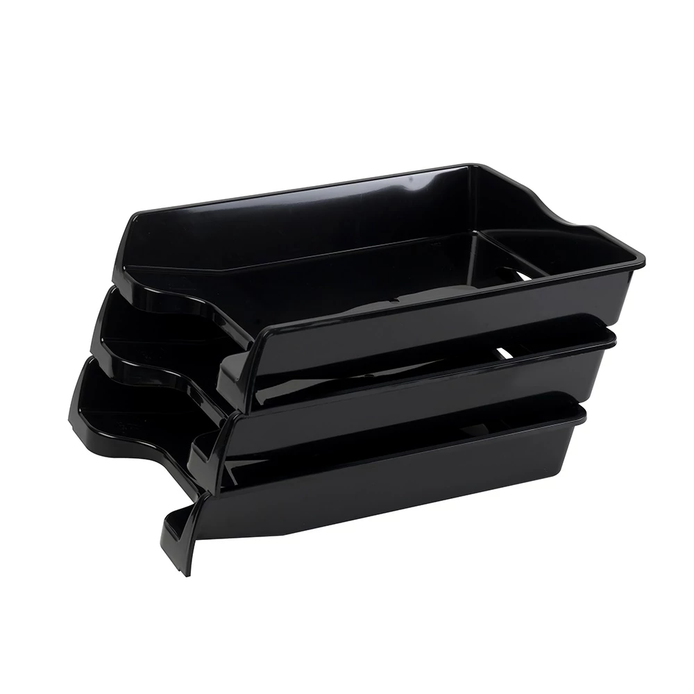 A mindennapi irodai munkában kevés dolog ad olyan stabil keretet, mint amikor a papírok, bejövő dokumentumok, számlák és feladatlapok tényleg egy helyen vannak. A Bluering® fekete irattálca pont ezt nyújtja: egy letisztult, erős, mégis visszafogott irodai kiegészítőt, amely rendszert visz az asztalodra anélkül, hogy túl nagy helyet foglalna. A 355 x 255 x 60 mm-es méret ideális A4-es dokumentumokhoz, és a legtöbb standard irodai tálcával kompatibilisen egymásba rakható, így kialakítható akár egy többszintes, jól áttekinthető rendszer is.