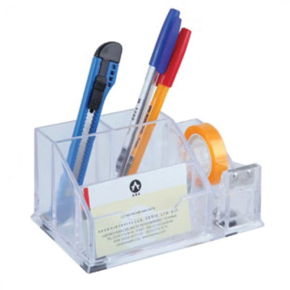 Írószertartó 4 rekeszes, 150x95x75mm, ragszalag tépővel műanyag, Bluering® víztiszta