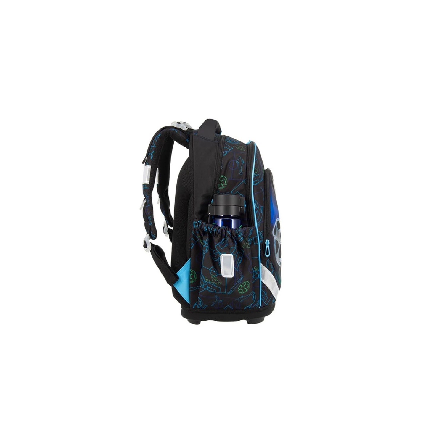 A széles, sűrűn állítható vállpántok és a mellkaspánt stabilan tartják a táskát mozgás közben, így futásnál, bringázásnál vagy lépcsőzésnél sem csúszik oldalra. A merevített hátpanel segít, hogy a könyvek és füzetboxok ne „nyomjanak be” pontszerűen, a párnázott zónák pedig szellőznek – kevésbé izzad a hát. A vízlepergető külső és az alul megerősített talp gondoskodik róla, hogy a padlóra téve se ázzon fel és ne puhuljon el.