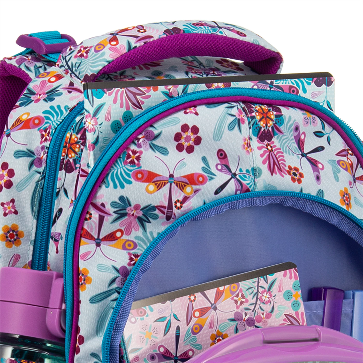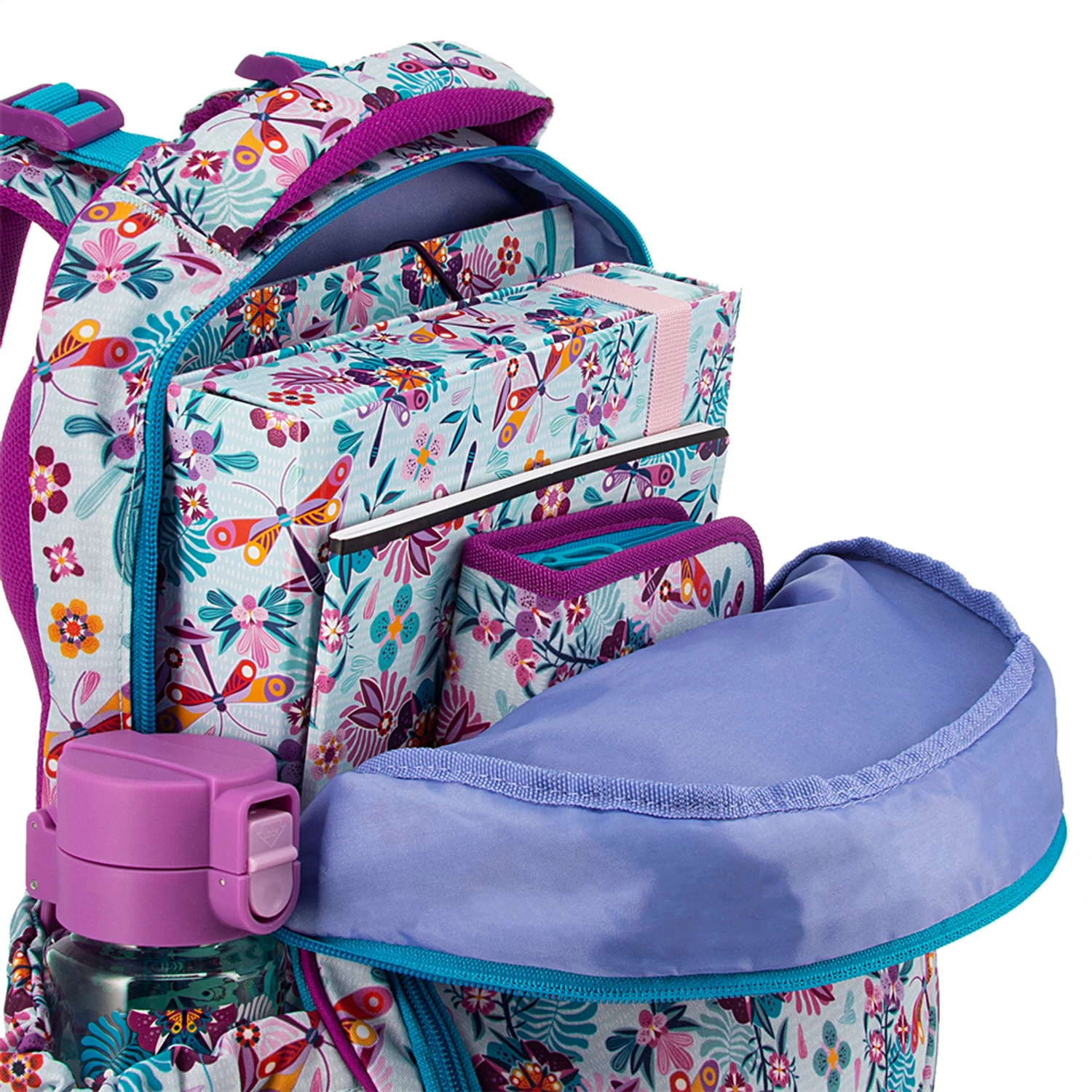Az oldalzseb rugalmas, de nagyon széles kulacs nem mindig fér be jól. Érdemes iskolabarát, keskenyebb kulacsot választani – így a cipzár zavartalanul fut. -