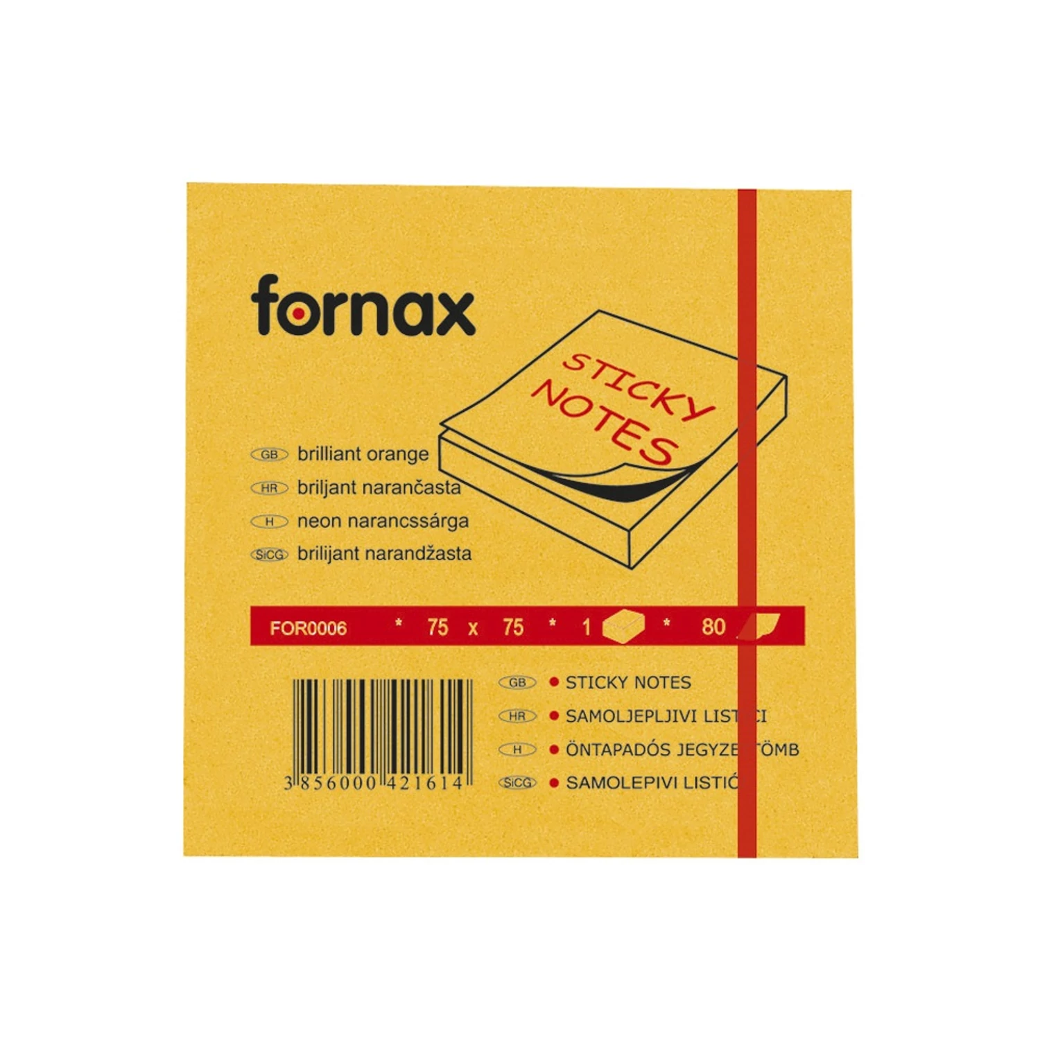 Jegyzettömb öntapadó, 75x75mm, 80lap, Fornax neon narancs