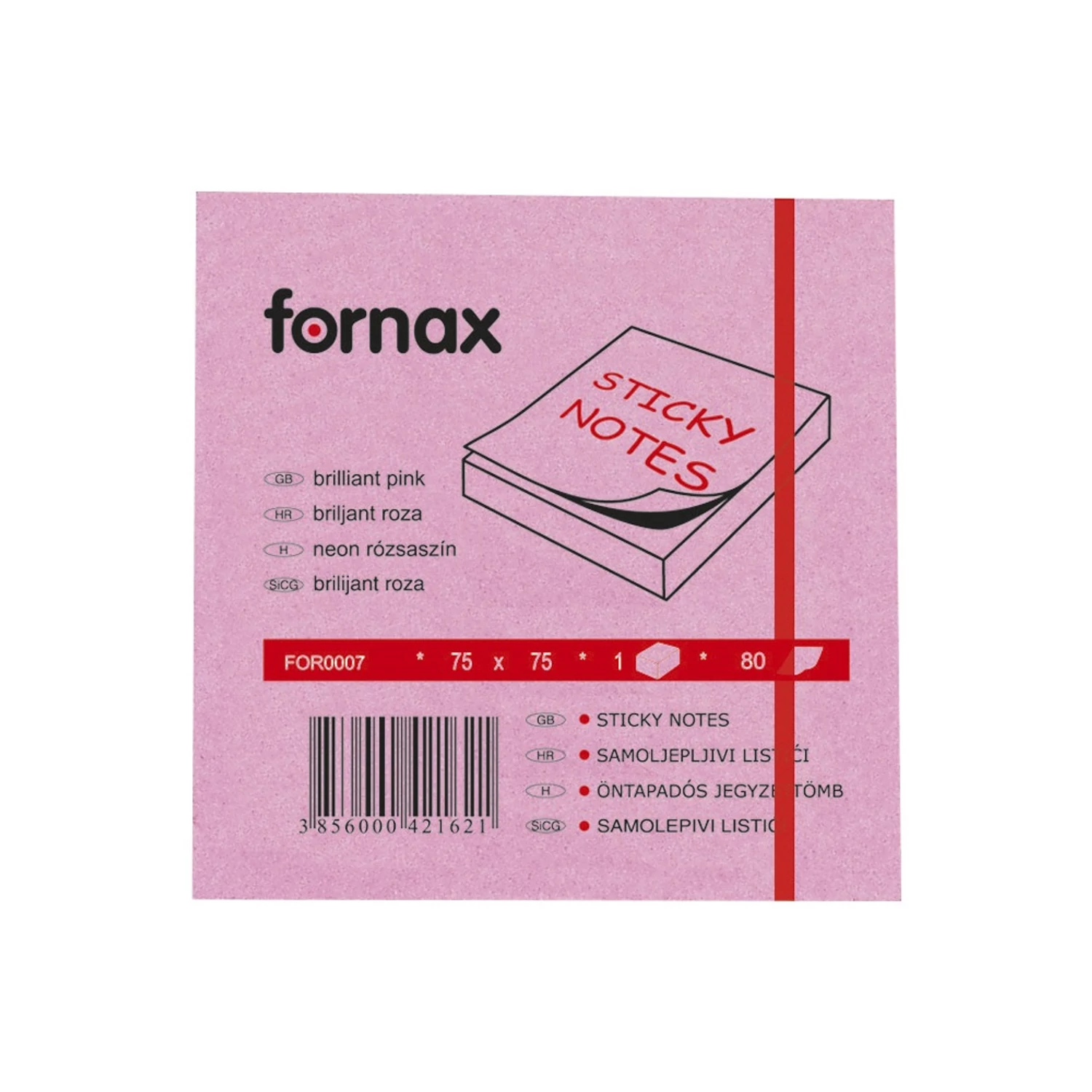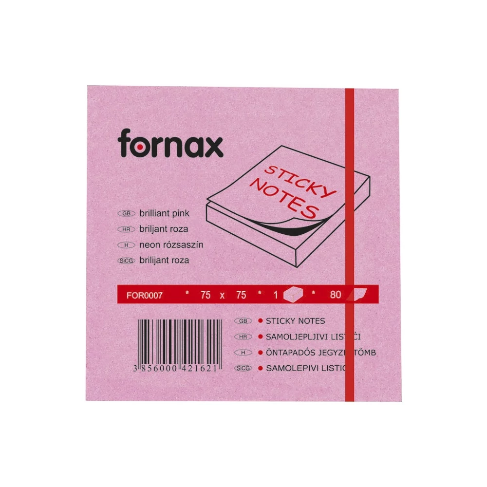 Jegyzettömb öntapadó, 75x75mm, 80lap, Fornax neon rózsaszín