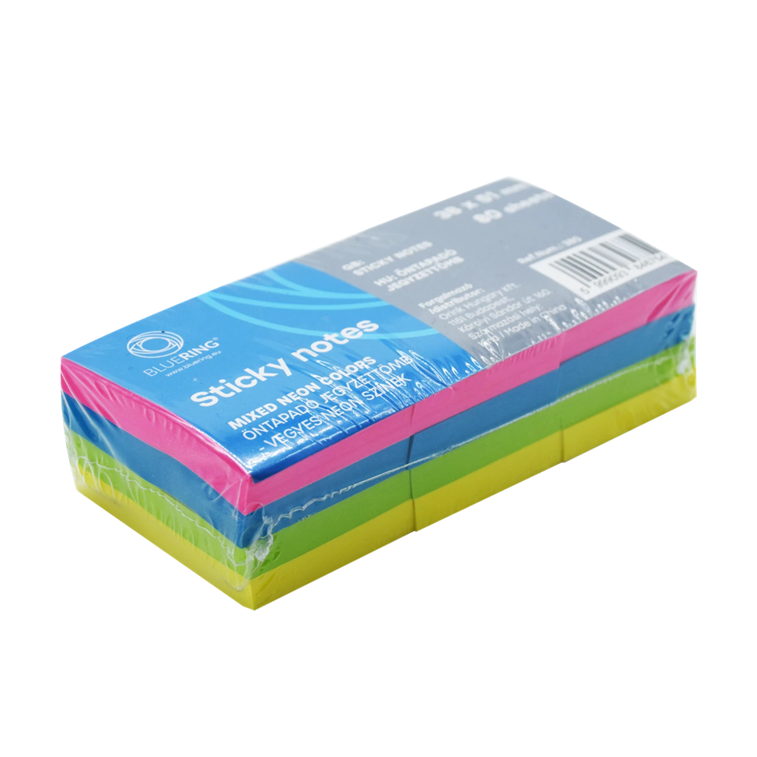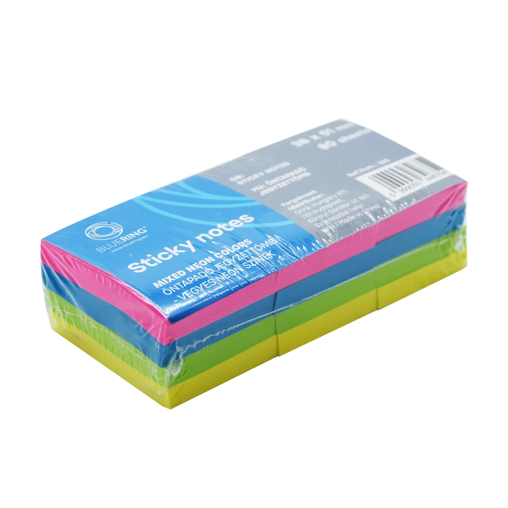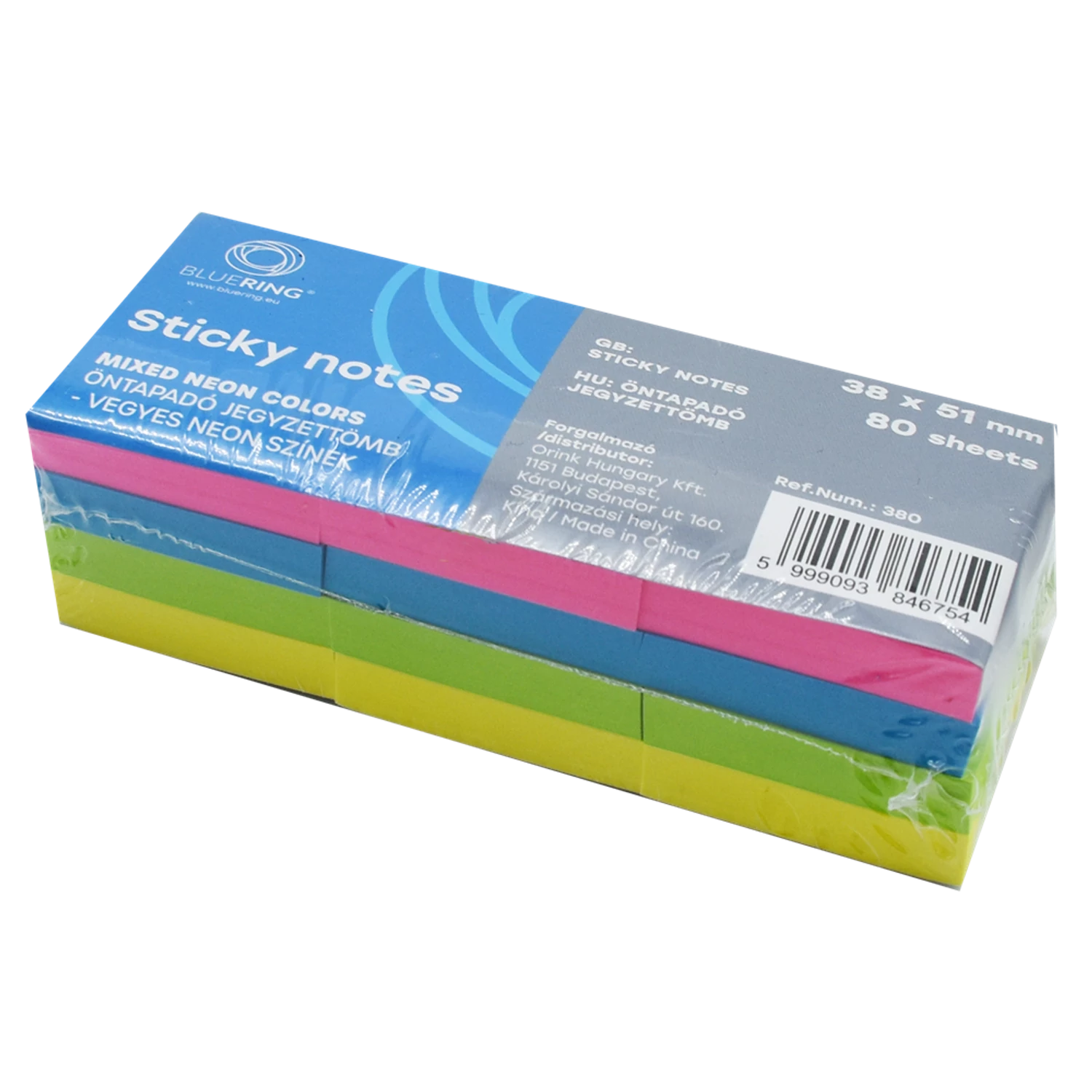 Jegyzettömb öntapadó, 38x51mm, 80lap, 12 tömb/csomag, Bluering® , neon