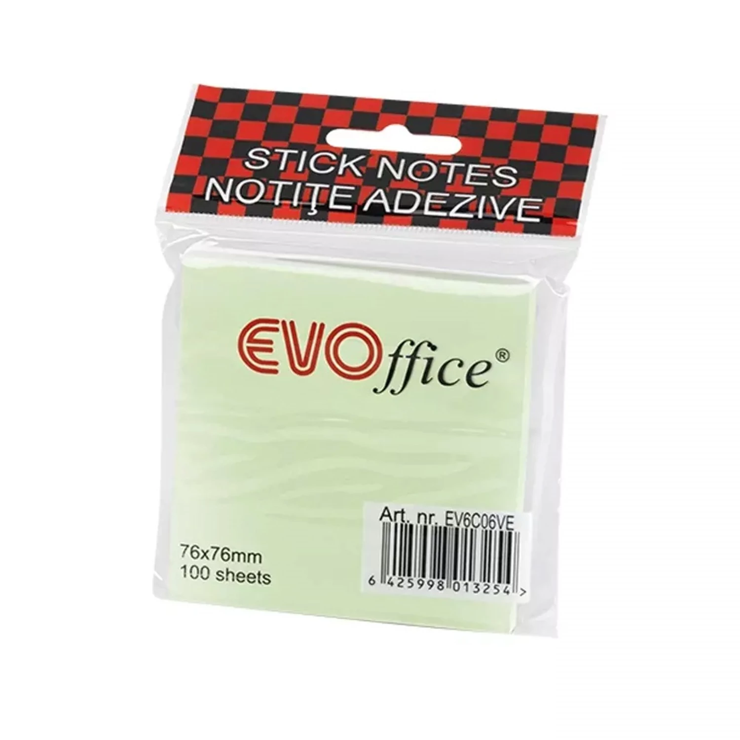 Jegyzettömb öntapadó, 75x75mm, 100 lap Evoffice, pastell zöld