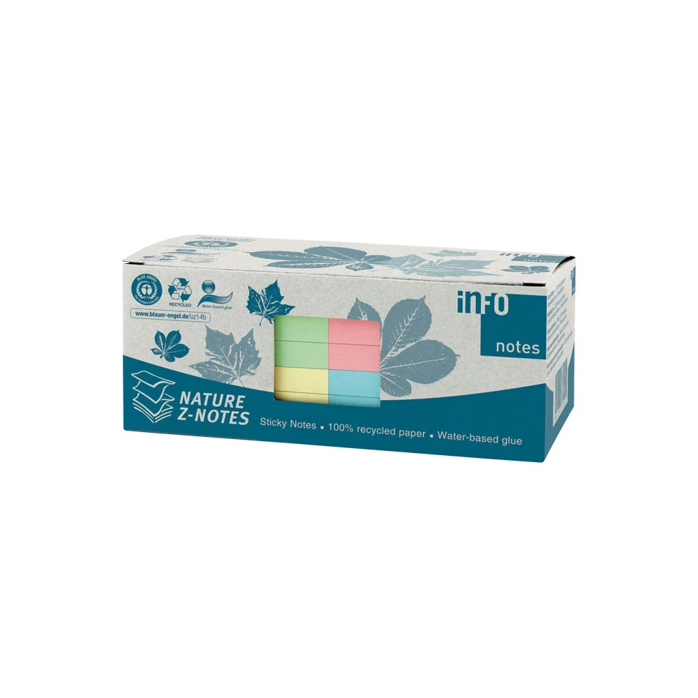 Jegyzettömb öntapadó, 75x75mm, 12x100lap, újrahasznosított 5644-88 Info Notes, pastell mix, kék, zöld, rózsaszín, sárga