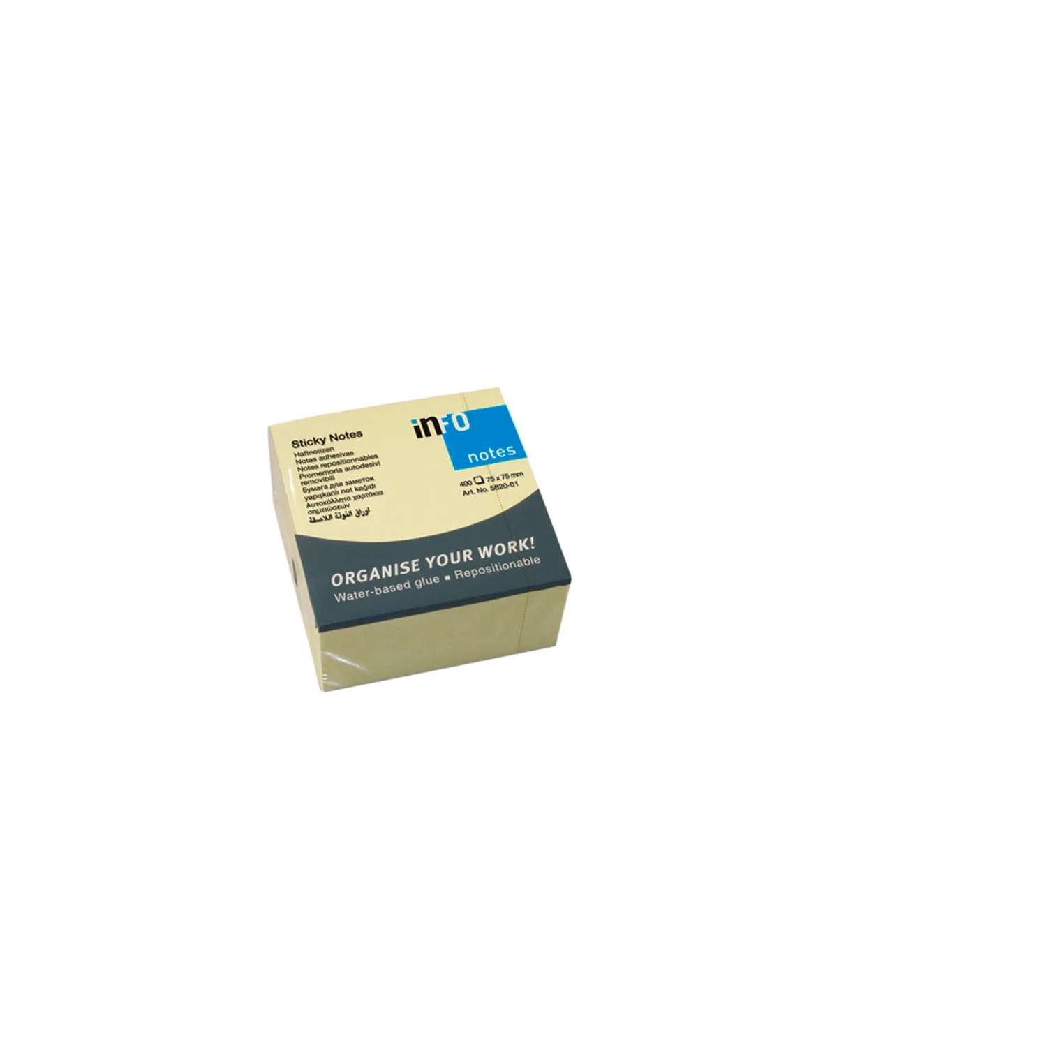 Jegyzettömb öntapadó, 75x75mm, 400lap, Info Notes sárga