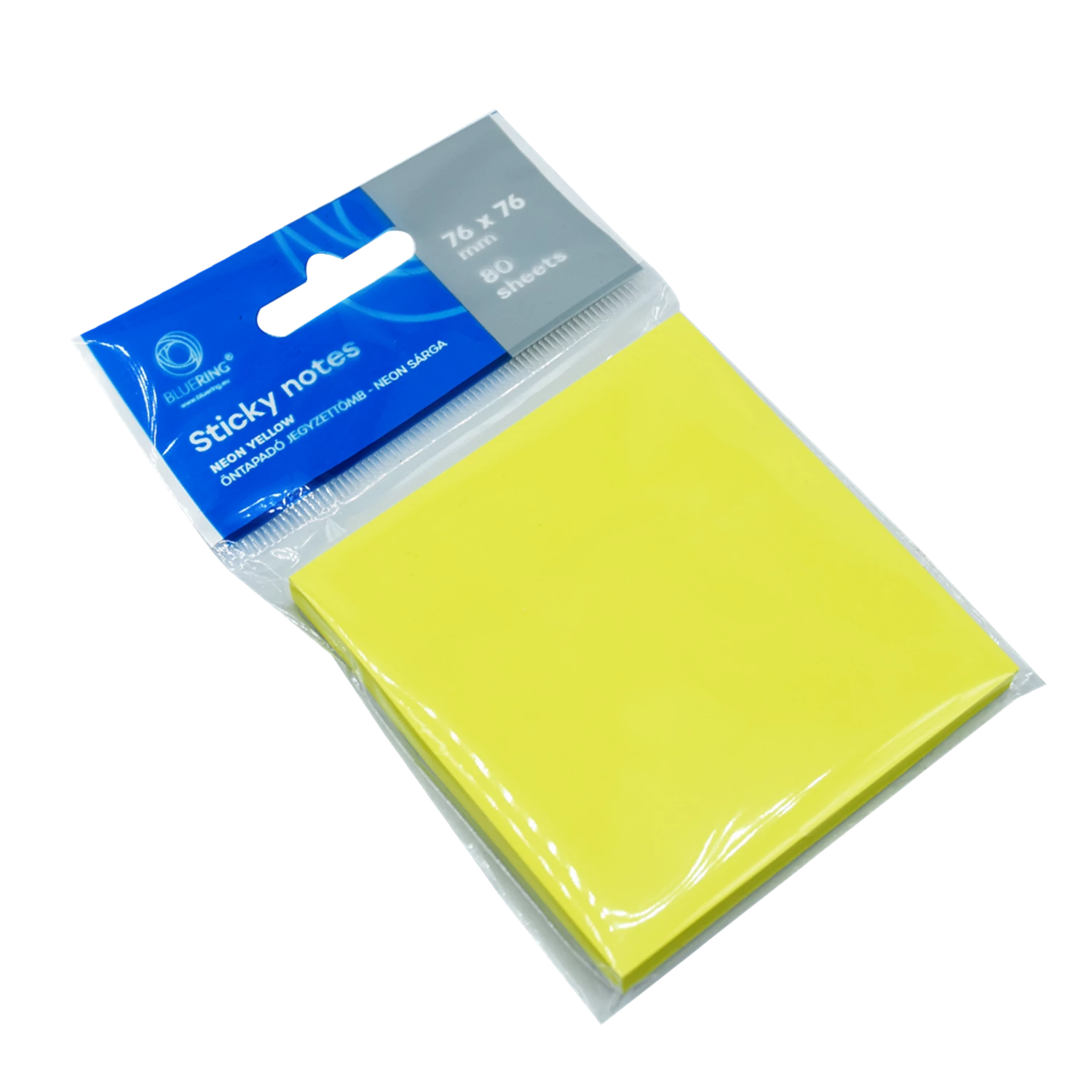 Jegyzettömb öntapadó, 76x76mm, 80lap, Bluering® , neon sárga