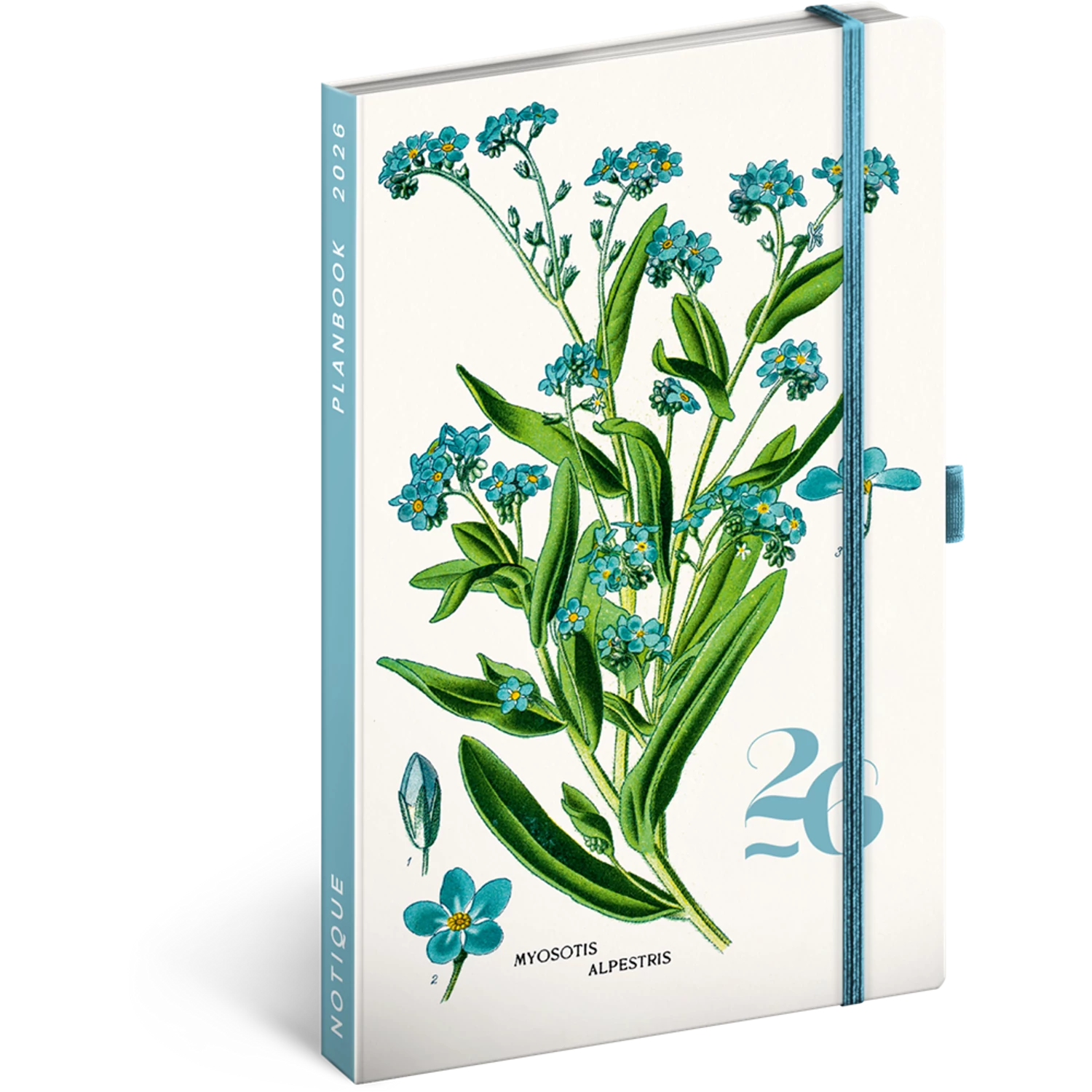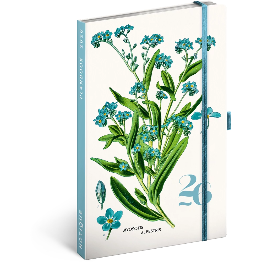 Keménytáblás notesz krémszínű lapokkal leszorító gumiszalaggal Herbarium 130x210mm, Presco