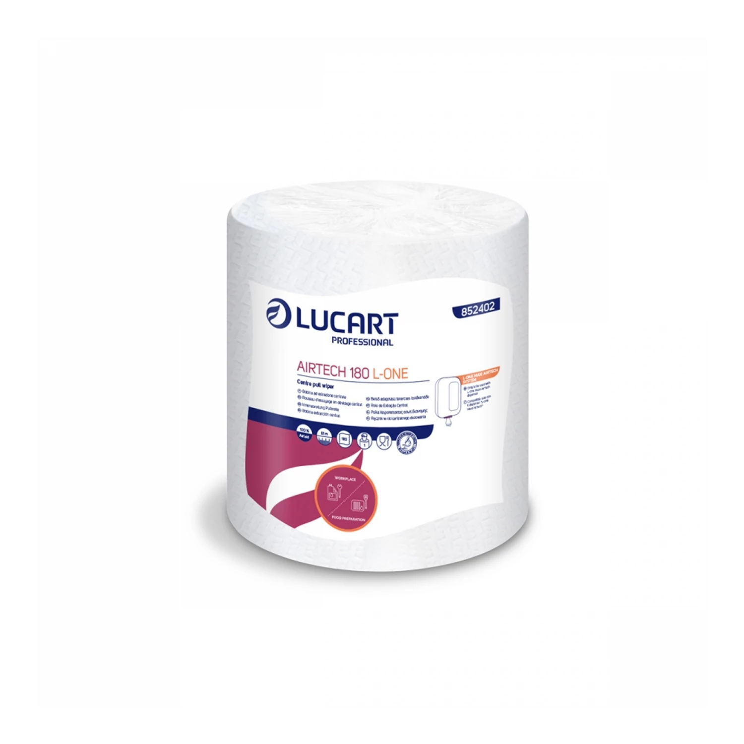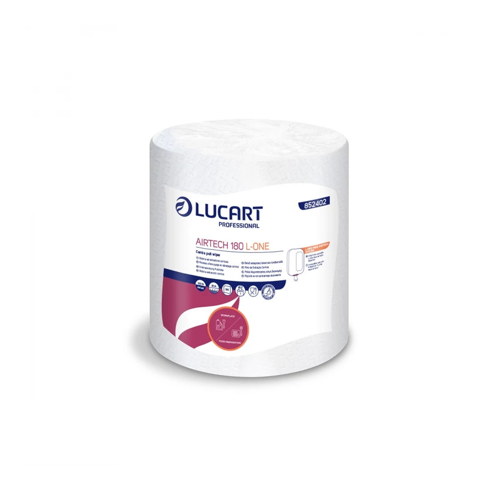 Kéztörlő 1 rétegű tekercses egyesével csomagolt 4 tekercs/karton Airtech 180 L-One Lucart_852402 hófehér