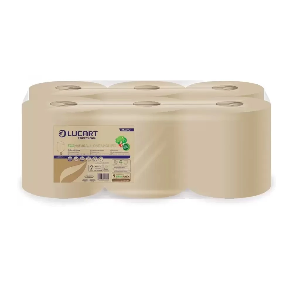 Kéztörlő 2 rétegű tekercses 6 tekercs/karton L-One Maxi 450 EcoNatural Lucart _852277 havanna barna