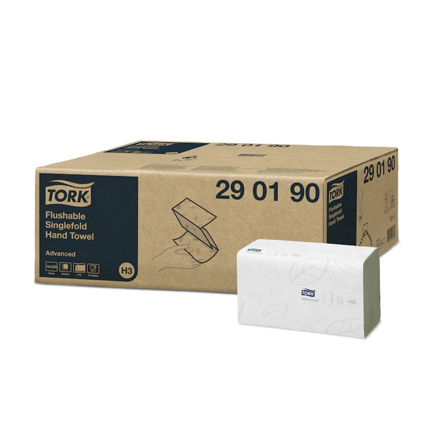 Kéztörlő 2 rétegű Z hajtogatású 250 lap/csomag 15 cs/karton toalettbe dobható Singlefold Tork_290190 fehér