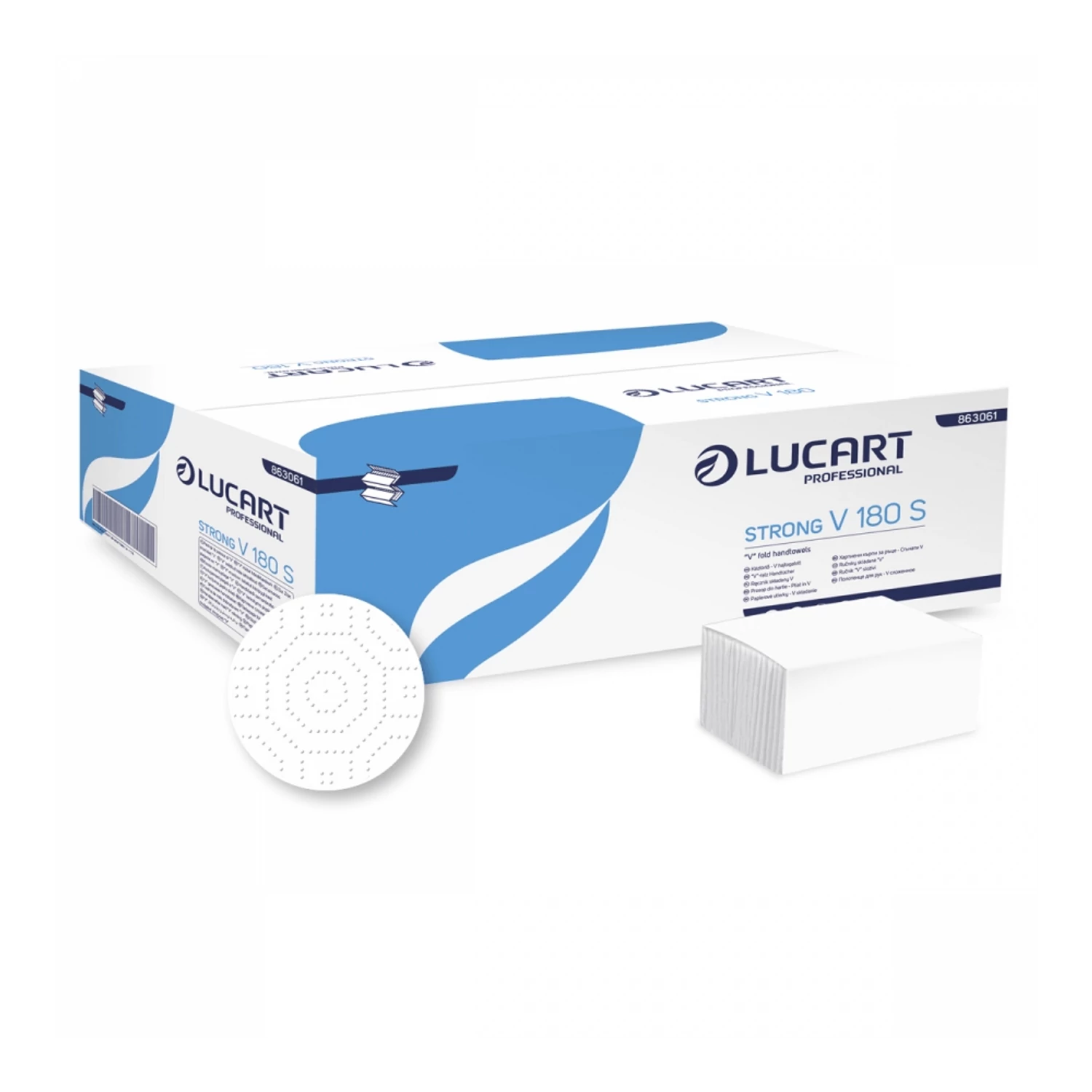 Kéztörlő 2 rétegű V hajtogatású 180 lap/csomag 18 cs/karton Strong Lucart_863061J fehér