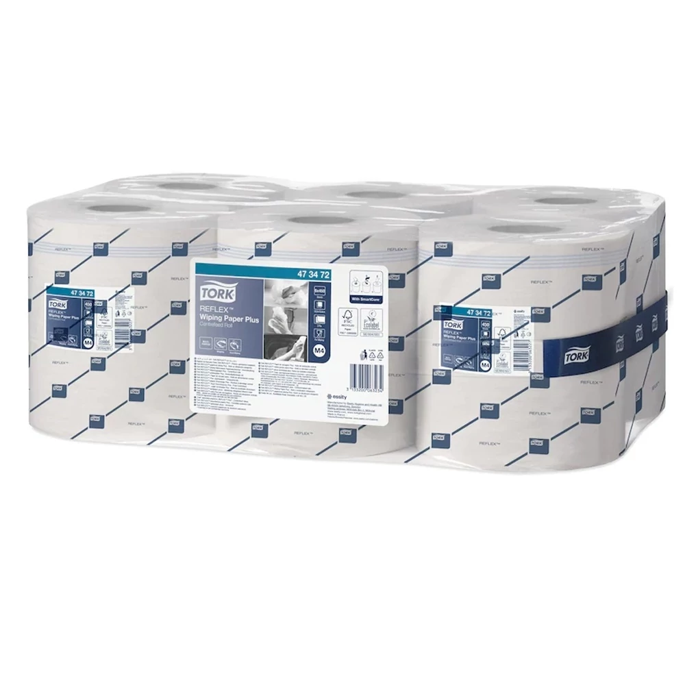 Kéztörlő 2 rétegű plusz belsőmagos 450 lap/150 m/tekercs 6 tekercs/karton Reflex™ M4 Tork_ 473472 fehér