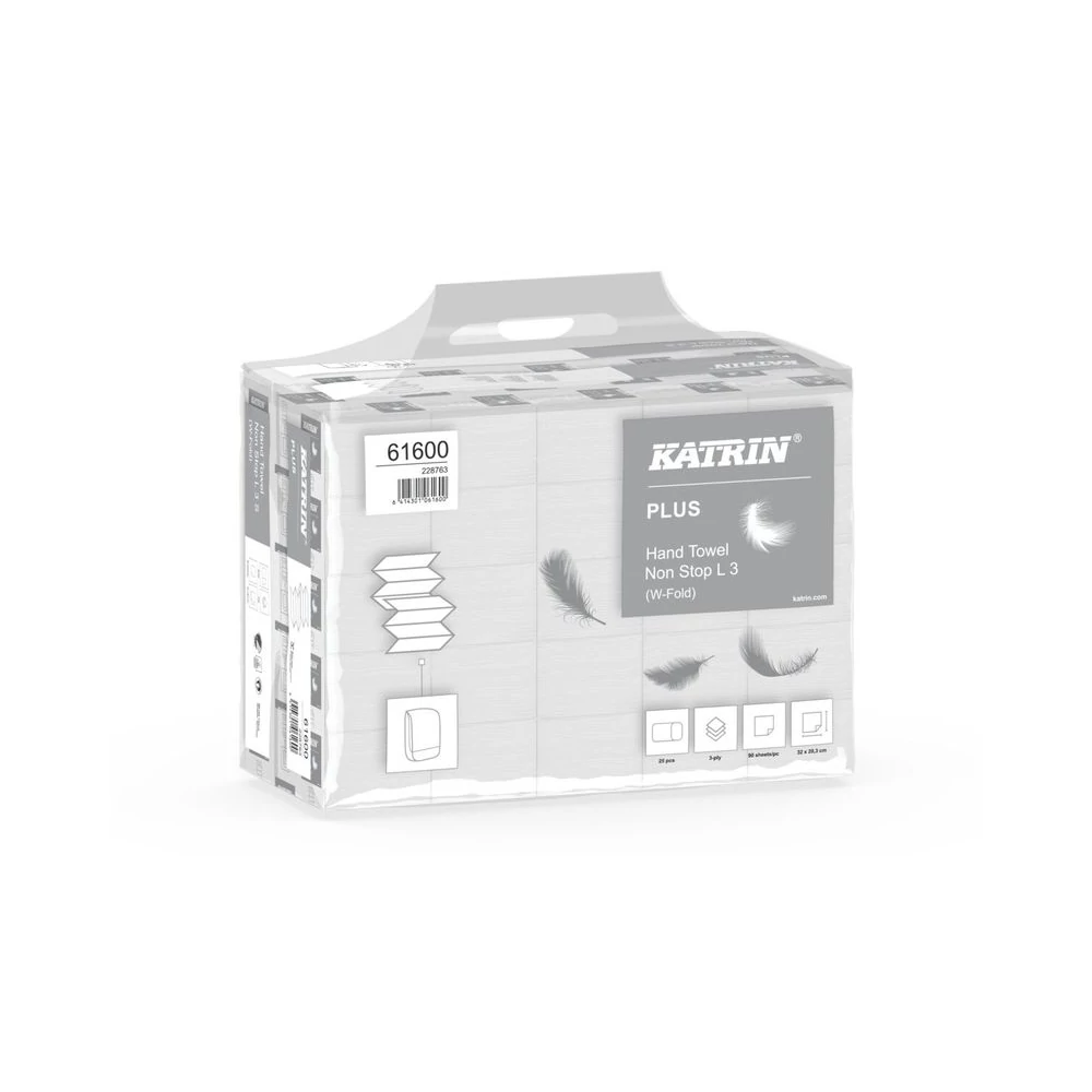 Kéztörlő W hajtogatású 3 rétegű 90 lap/cs 25 csomag/karton Katrin Plus Non stop L3 hófehér_61600