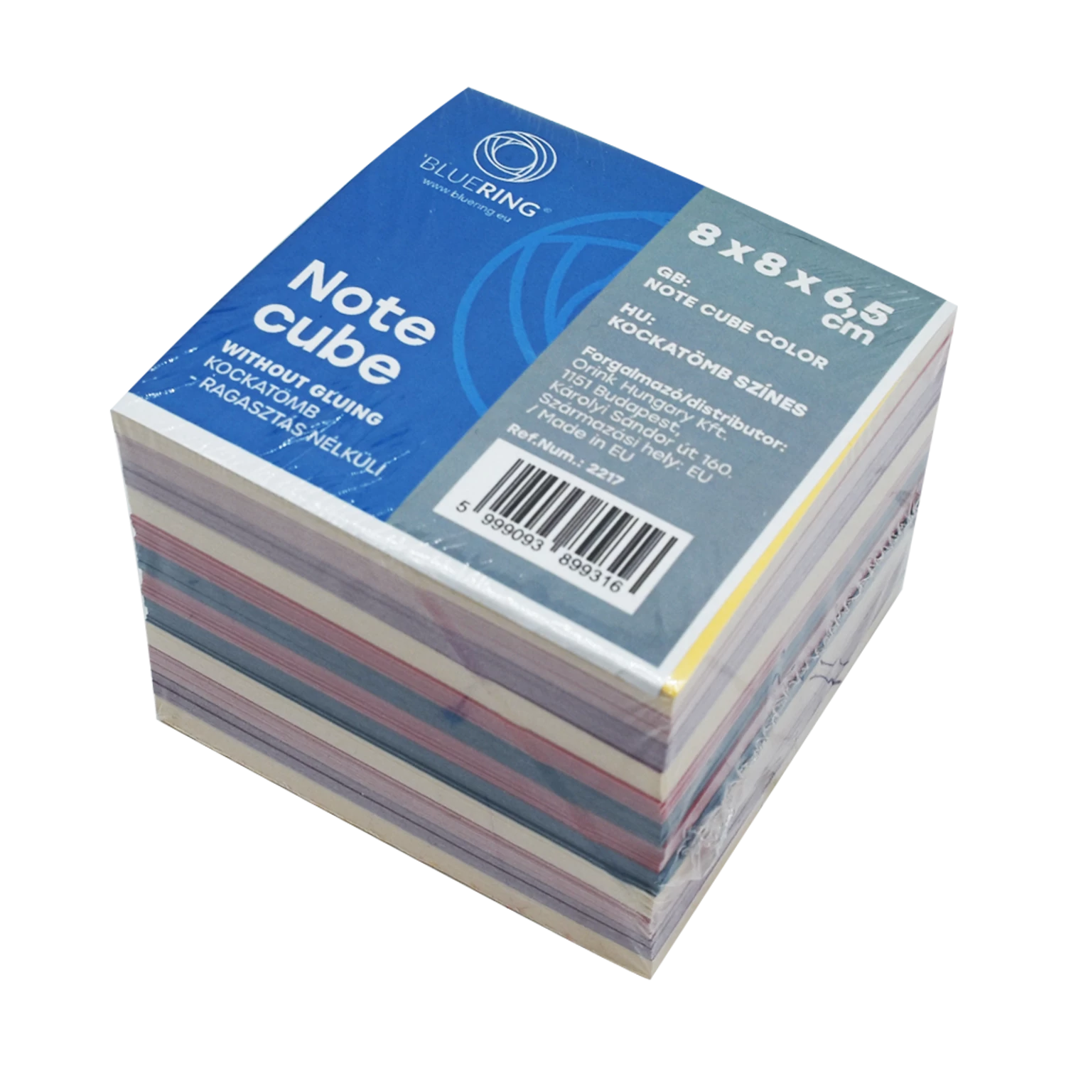 A Bluering színes, ragasztás nélküli kockatömb 8×8×6,5 cm méretben praktikus asztali alapdarab: gyorsan írható, könnyen kezelhető, és a színek miatt jobban átláthatóvá teszi a napi teendőket. Irodába, recepción és otthoni munkasarokba is jó választás, ha azonnali jegyzet kell, felesleges körök nélkül.