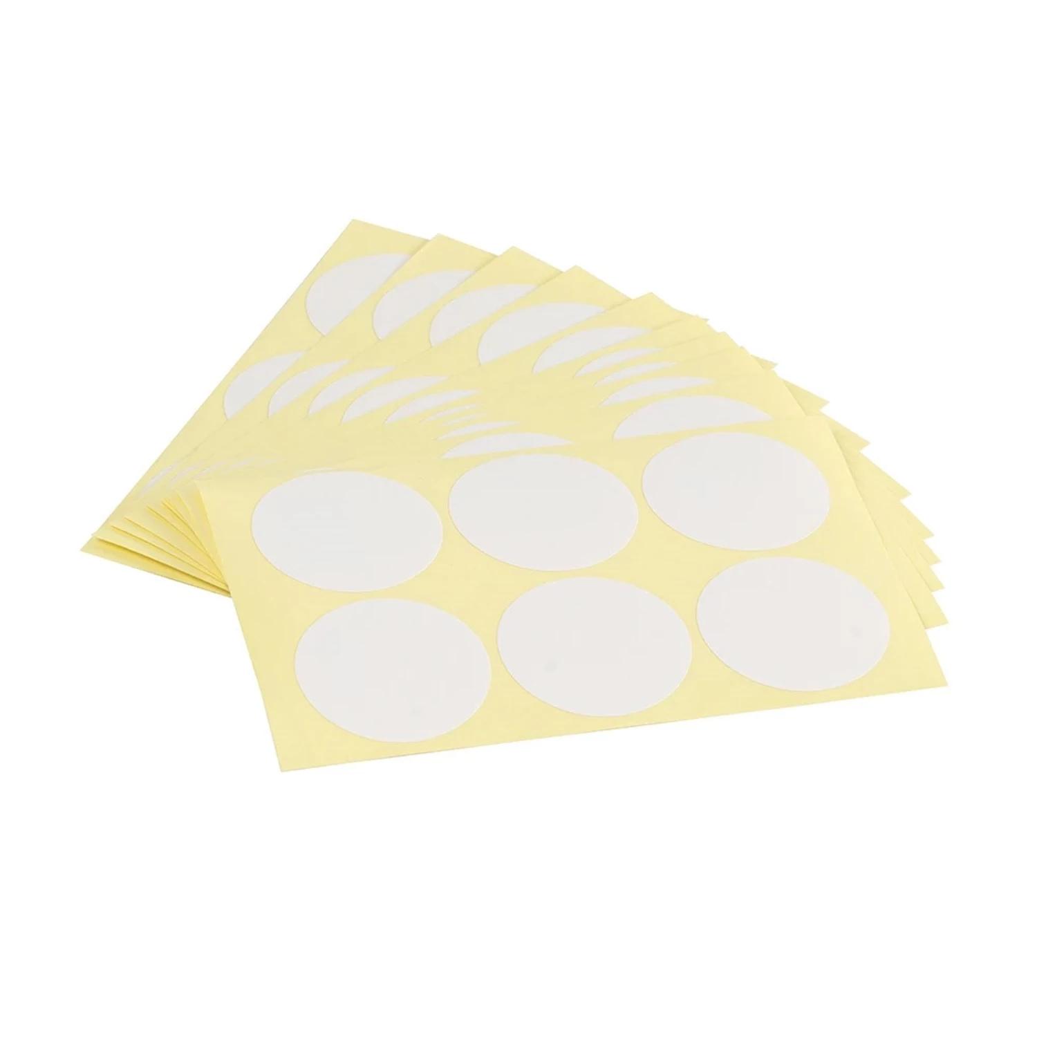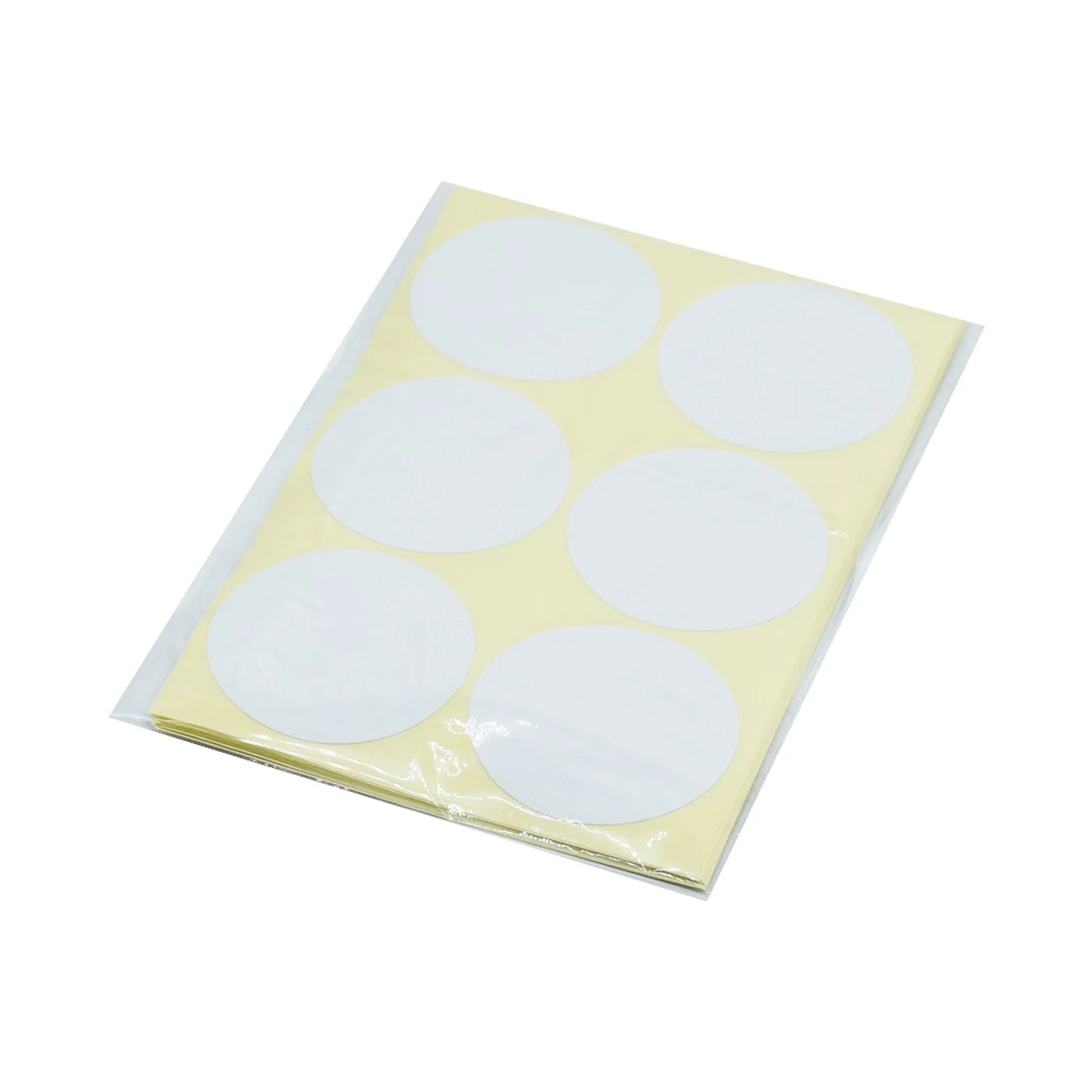 Nyomásra tapadó fehér,kör alakú etikett címke, 40mm átmérőjű, 6 címke/lap, 10lap/csomag, 36csomag/gyűjtő, 864 csomag/karton
