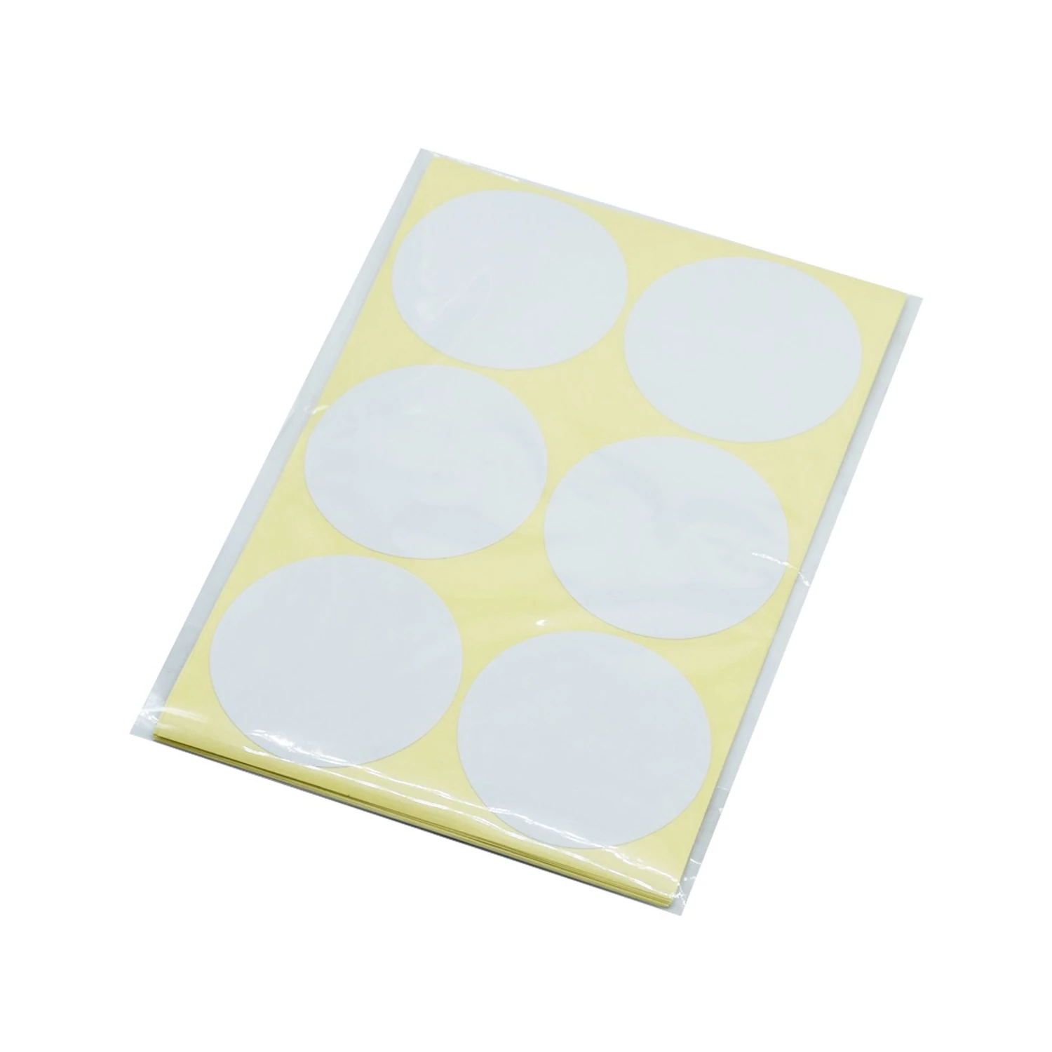 Nyomásra tapadó fehér,kör alakú etikett címke, 50mm átmérőjű, 6 címke/lap, 10lap/csomag