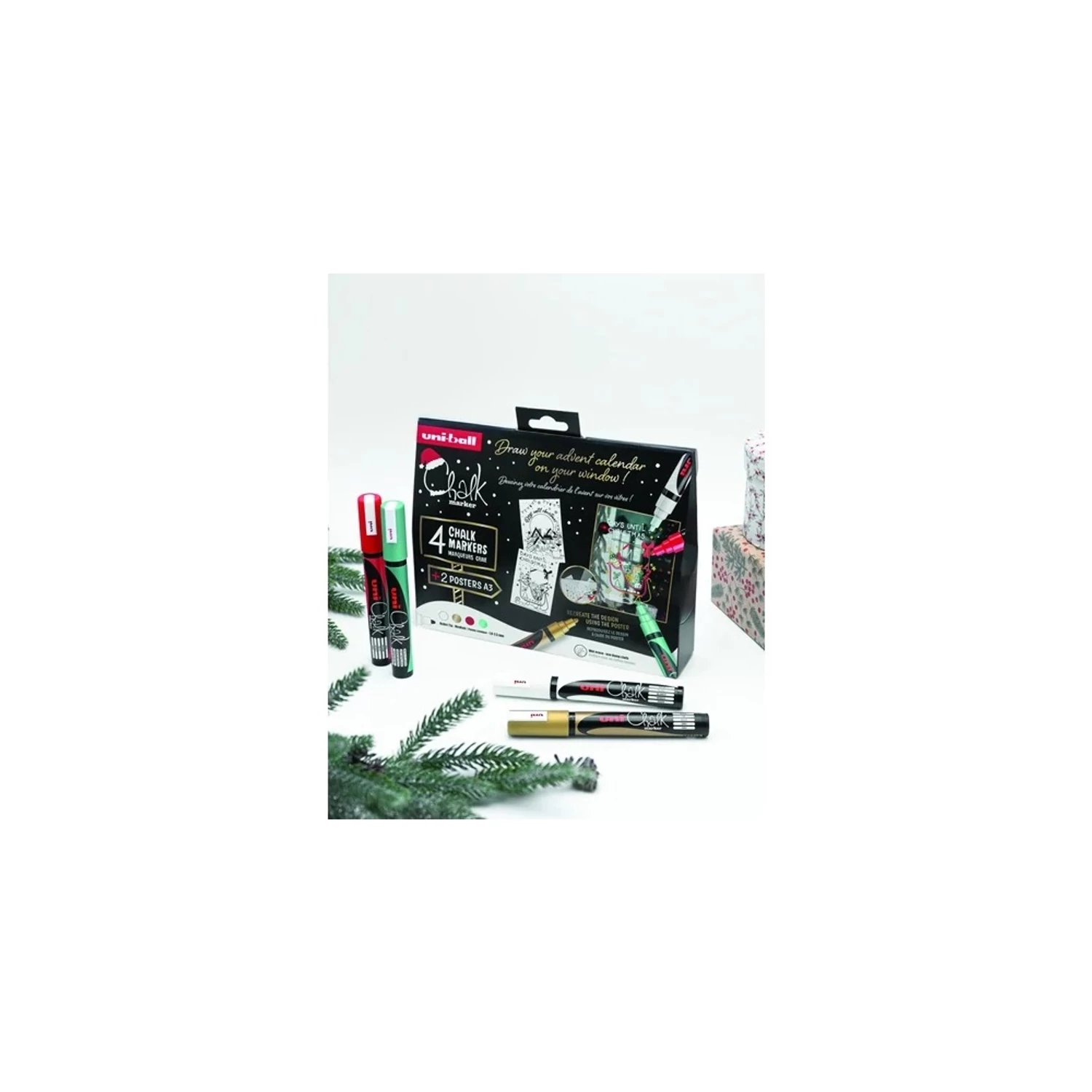 A Uni-Posca PWE-5M karácsonyi készlet egy 4 darabos folyékony krétamarker (krétafilc / dekor marker) szett, 1,8–2,5 mm-es vonalvastagsággal. A csomag kifejezetten ablakdekorációhoz lett kitalálva: a termékleírás szerint karácsonyi ablakdíszek készítésére ajánlott. A krétamarkerek sokféle projekthez használhatók, és a leírás szerint különösen hatékonyak üvegen. Ugyanakkor papírra és kartonra is lehet velük dolgozni, ha színes marker jelleggel szeretnéd használni. A termék egyik fontos tulajdonsága, hogy a leírás alapján beltéren és kültéren is alkalmazható, mert esőálló. A készlethez 2 db A3-as papír sablon is jár, ami nagy segítség, ha gyorsan szeretnél szép mintát rajzolni az ablakra.