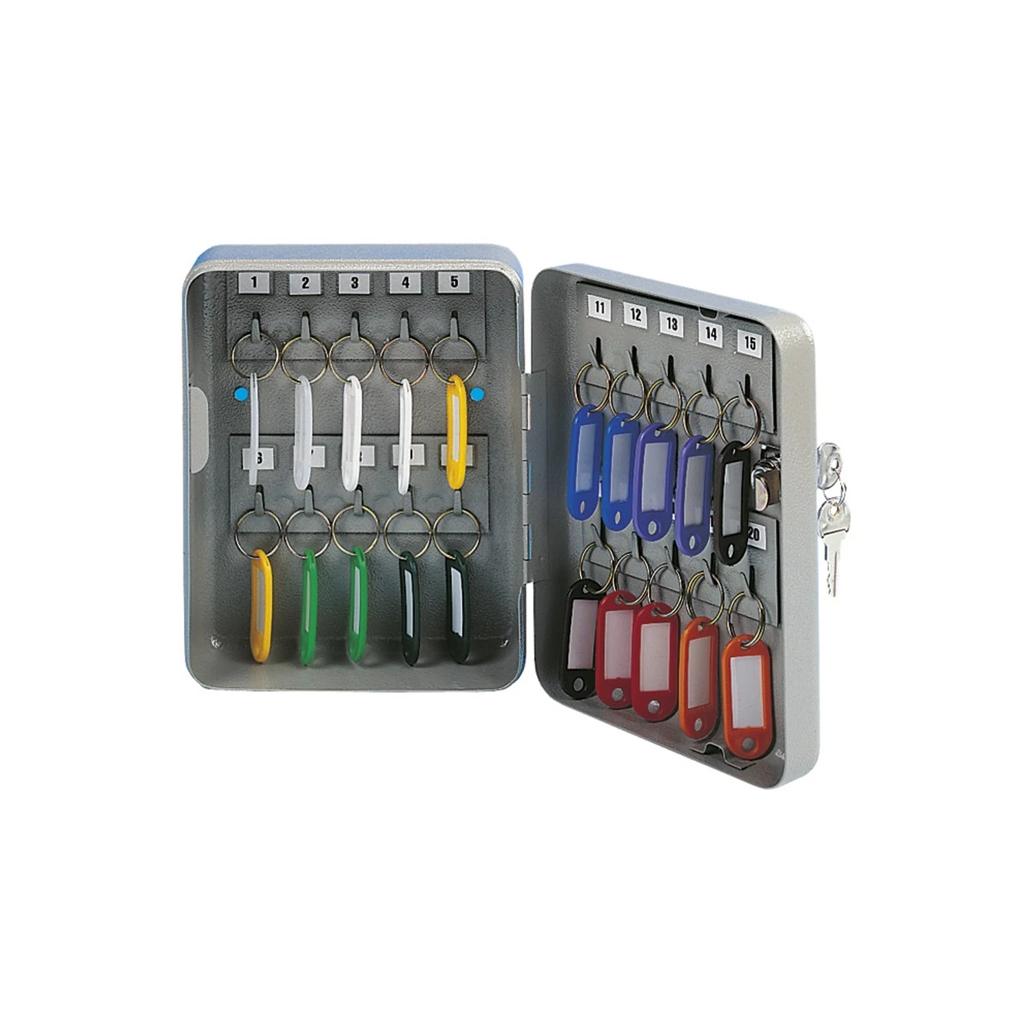 Fali kulcsszekrény, fém, biztonsági zárral, 20 férőhelyes Ez a robusztus, fémből készült kulcsszekrény ideális megoldás akár 20 kulcs biztonságos tárolására és rendszerezésére. Főbb jellemzői: Ez a kulcsszekrény garantálja, hogy minden kulcs megfelelően rendszerezett és védett legyen. Hiteles tájékoztatás: Elkötelezettek vagyunk termékeink biztonságának garantálásáért, nyomon követjük a termékbiztonsággal kapcsolatos valamennyi európai uniós és hazai szabályozást és biztosítjuk termékeink azoknak történő megfelelését. Az EU 2023/988-as számú Általános Termékbiztonsági Rendeletét (GPSR) is alkalmazzuk, így ha a termékeink biztonságát illetően fogyasztóként kérdése, észrevétele van, vagy esetleg balesetről van tudomása, kérjük, írja meg nekünk. GPSR: PBS Connect Polska Sp. z o.o.