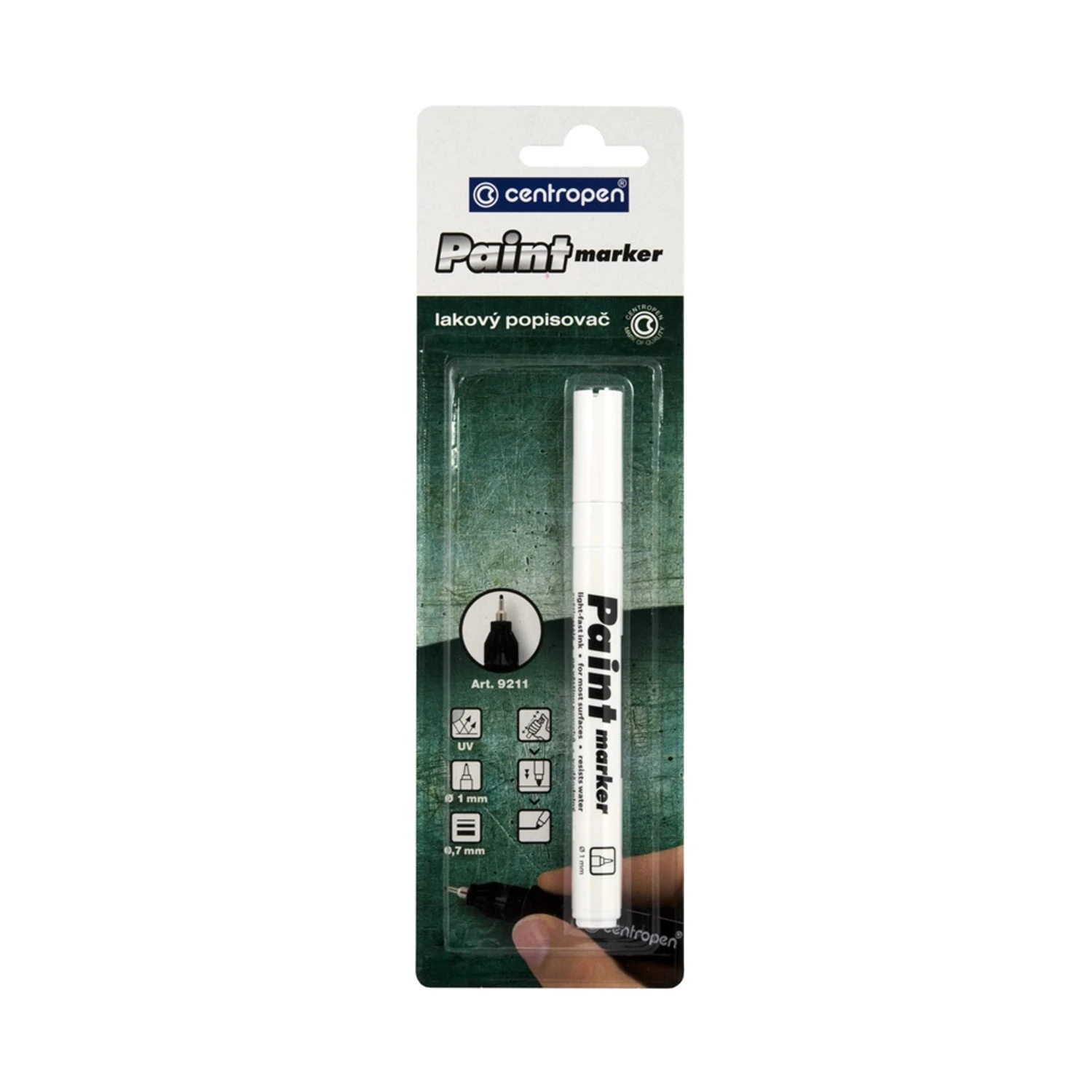 Lakkmarker 0,7mm, vékony metál hegy Centropen 9211 fehér