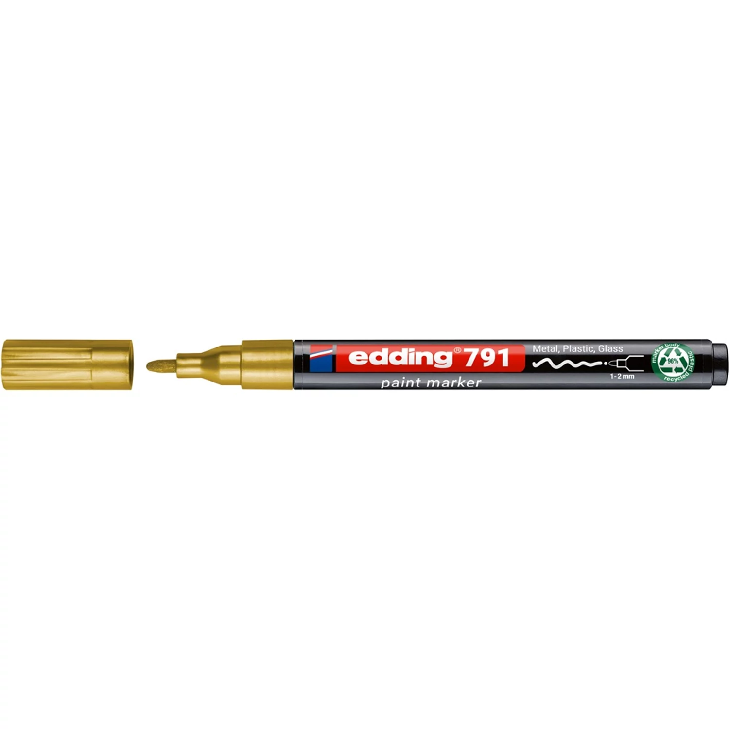 Üveg, porcelán, műanyag, fém illetve szinte minden felület feliratozására, jelölésére alkalmas, különösen ajánlott szennyezett felületekhez.Lakk- és dekorációs marker. Kerekített csúcs, műanyag test, permanent, lakkszerűen fedő festékkel töltve.Gyorsan száradó festék, írásképe törlés- és vízálló, magas fény- hő- és törlésálló.Festékadagolása egyenletes, szelep vezérli. Vonalvastagság: 1-2 mm. Katalóguskód: 39261 Hiteles tájékoztatás: Elkötelezettek vagyunk termékeink biztonságának garantálásáért, nyomon követjük a termékbiztonsággal kapcsolatos valamennyi európai uniós és hazai szabályozást és biztosítjuk termékeink azoknak történő megfelelését. Az EU 2023/988-as számú Általános Termékbiztonsági Rendeletét (GPSR) is alkalmazzuk, így ha a termékeink biztonságát illetően fogyasztóként kérdése, észrevétele van, vagy esetleg balesetről van tudomása, kérjük, írja meg nekünk. GPSR: EDDING INTERNATIONAL GMBH Bookkoppel 7, 22926 Ahrensburg, Germany info@edding.com www.edding.com