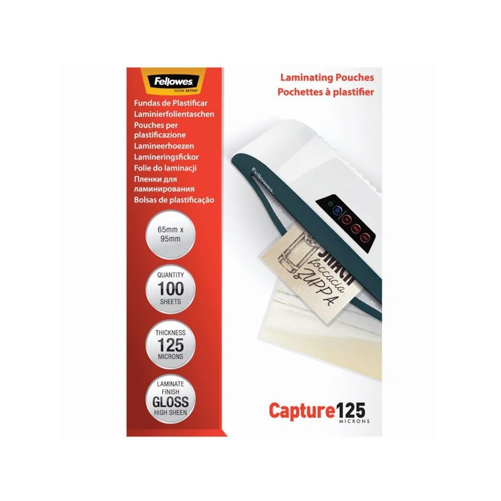 Lamináló fólia, 65x95mm, 125 mikron, fényes, 100 db/doboz, Fellowes®