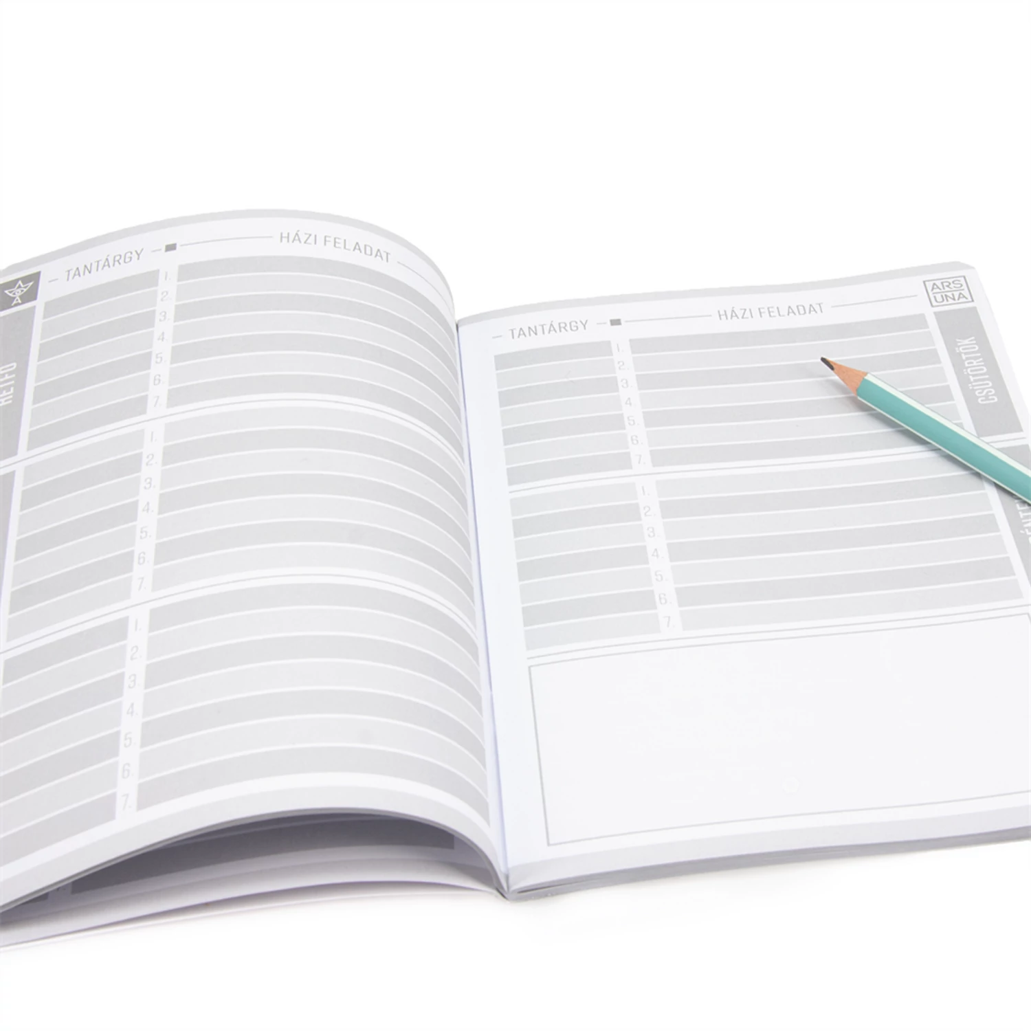 A/5 méretű, 38 lapos leckefüzet, melyben a leckék tantárgyanként napokra bontva rögzíthetők megjegyzésekkel kiegészítve. Borítója 350 gr-os kartonra, 4 szín nyomással, fényes fóliával készült. Belseje 110 gr-os papír. Hiteles tájékoztatás: Elkötelezettek vagyunk termékeink biztonságának garantálásáért, nyomon követjük a termékbiztonsággal kapcsolatos valamennyi európai uniós és hazai szabályozást és biztosítjuk termékeink azoknak történő megfelelését. Az EU 2023/988-as számú Általános Termékbiztonsági Rendeletét (GPSR) is alkalmazzuk, így ha a termékeink biztonságát illetően fogyasztóként kérdése, észrevétele van, vagy esetleg balesetről van tudomása, kérjük, írja meg nekünk. GPSR: Ars Una Studio Kft., H-1113 Budapest, Csetneki u. 13.,webshop@arsuna.hu, https://arsuna.hu/
