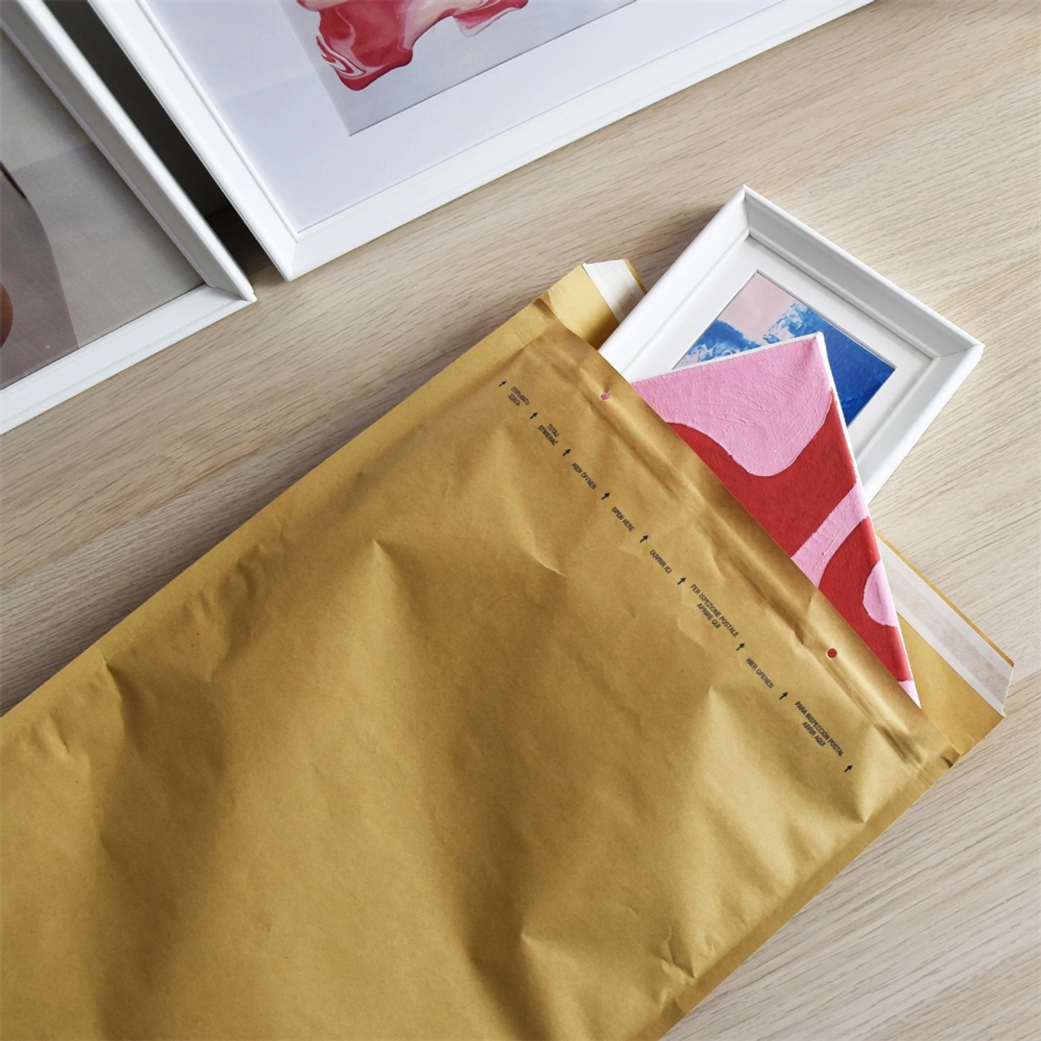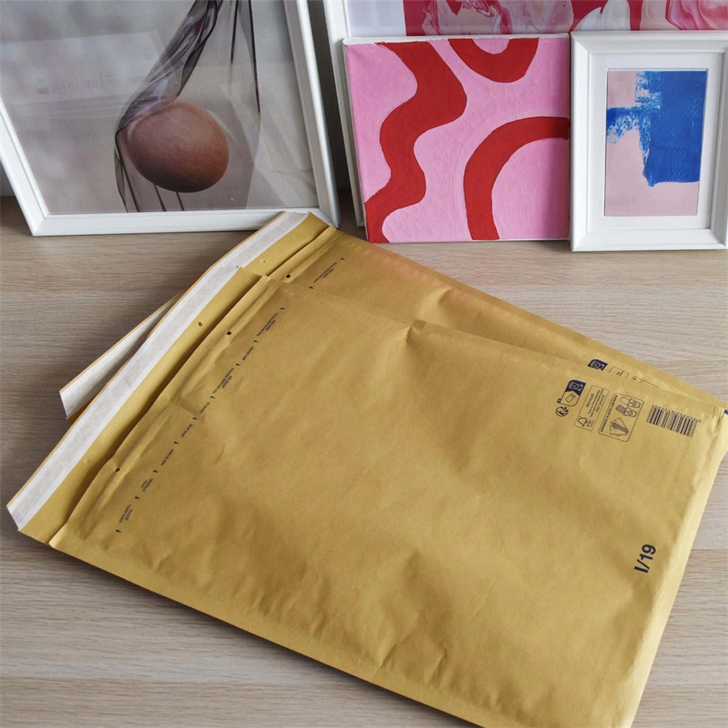 A külső réteg vastag, barna papírborítása ellenáll a felületi sérüléseknek, nem szakad könnyen, és megtartja a tasak formáját még akkor is, ha a tartalom nem teljesen szabályos alakú. A belső buborékfólia pedig rezgéscsillapítóként működik: tompítja az ütődéseket, védi a sarkakat, és gondoskodik arról, hogy a tartalom eljusson oda, ahova szánod – sérülés nélkül.