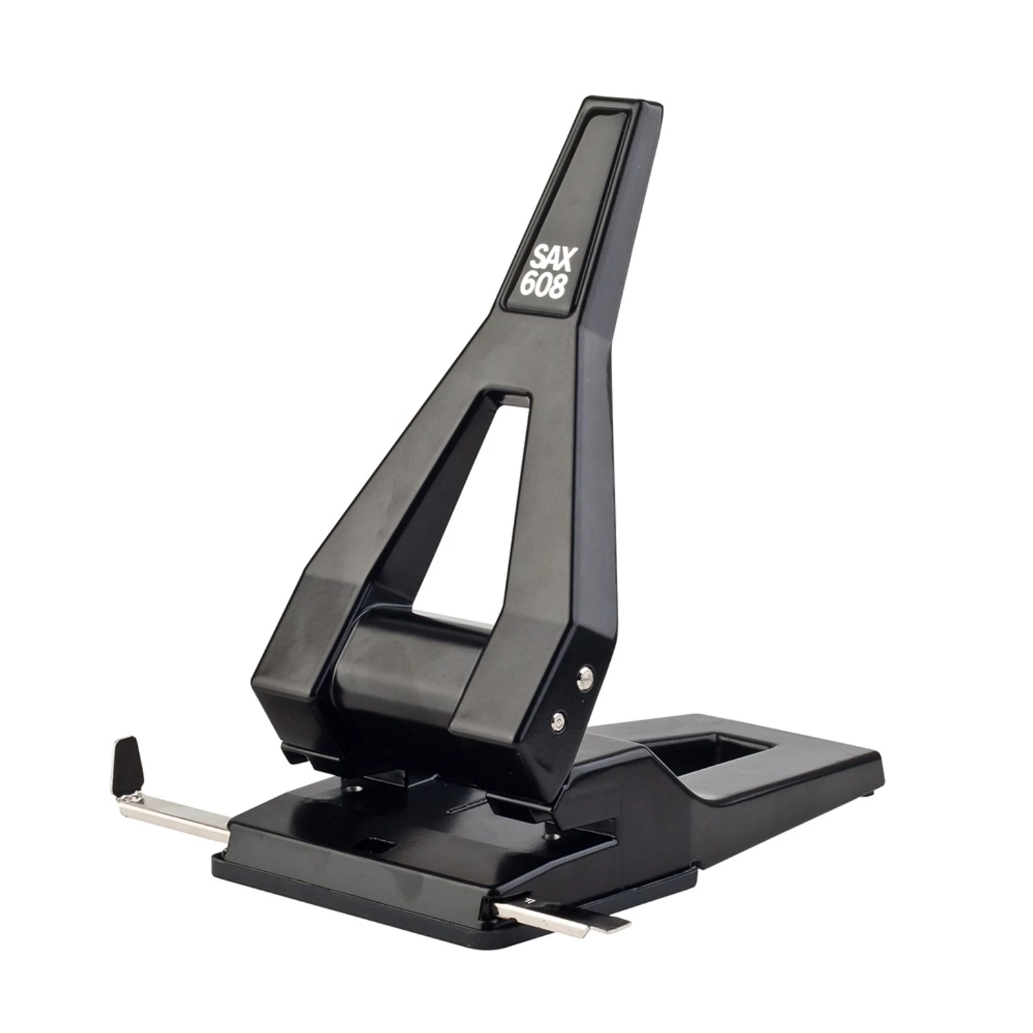 A Sax 608 professzionális lyukasztó azoknak készült, akik nap mint nap nagy mennyiségű papírral dolgoznak, és elvárják, hogy az eszközük megbízható, pontos és ergonomikus legyen. A 63 lapos kapacitás és a 25%-kal könnyített lyukasztási technológia együtt teszi a munkát gyorsabbá és kényelmesebbé – mindezt masszív, elegáns fekete fémházba zárva.