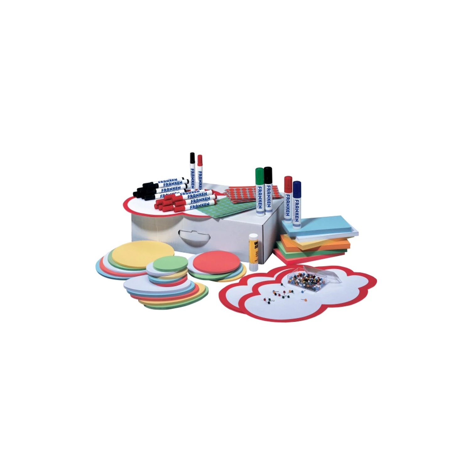 A készlet tartalma: 10 db felhő (25 x 42 cm), 500 db kártya (20,5 x 9,5 cm), 100 db ovális kártya (19 x 11 cm), 100 db kör alakú 9,5 cm-es kártya, 100 db kör alakú 14 cm-es kártya, 50 db kör alakú 19,5 cm-es kártya ve gyes színekben. 240 db jelölőpont piros és zöld színben, 10 fekete és piros táblairón, 4 db jumbo marker (vágott hegyű), 1 db ragasztóstift, 200 db gömbölyű fejű tűzőszeg. Hiteles tájékoztatás: Elkötelezettek vagyunk termékeink biztonságának garantálásáért, nyomon követjük a termékbiztonsággal kapcsolatos valamennyi európai uniós és hazai szabályozást és biztosítjuk termékeink azoknak történő megfelelését. Az EU 2023/988-as számú Általános Termékbiztonsági Rendeletét (GPSR) is alkalmazzuk, így ha a termékeink biztonságát illetően fogyasztóként kérdése, észrevétele van, vagy esetleg balesetről van tudomása, kérjük, írja meg nekünk. GPSR: LEITZ ACCO Brands GmbH & Co KG