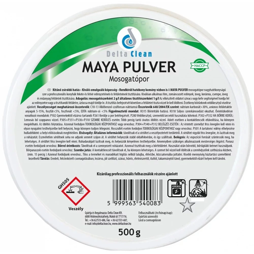 A Maya Pulver mosogatópor kitűnő zsíroldó hatással és jó emulgeáló képességgel rendelkezik. Hatékonyan távolítja el a szennyeződéseket, cseppmentes száradást biztosít még a kemény víz esetén is. Az 500g-os termékünket praktikus, visszazárható csomagolásban biztosítjuk. Nagyhatékonyságú szer a professzionális konyhák fekete és fehér edényzetének és felületeinek tisztítására. Kiválóan alkalmas fém, zománcozott edények, üveg, kerámia, csempe, üveg és műanyag felületek tisztítására. Mosogatószerként egy liter vízhez 2 g terméket ajánlott használni, míg általános tisztítószerként literenként 1 g Maya Pulver feloldása javasolt. Az elkészített oldatot szivacs vagy kefe segítségével hordja fel az edényzetre vagy a tisztítandó felületre, áztassa majd törölje le. A tisztítás befejezését követően a felületet tiszta vízzel kell leöblíteni. Érzékeny bőrűeknek védőkesztyű viselése ajánlott. Összetevők: 648/2004/EK szerint: nátrium karbonát>30%, anionos felületaktív anyagok 5-15%, foszfát<5%, foszfonát <5%, EDTA nátrium-só <5% GHS piktogram: Figyelmeztetés: Veszély Figyelmeztető mondatok: H315 Bőrirritáló hatású, H318 Súlyos szemkárosodást okoz Kiszerelés: 500 g / darab, 18 darab / karton Mosogatópor 500 g Maya Pulver termék alkalmazásakor ügyeljen a biztonságra! Használat előtt mindig olvassa el a címkét és a használati útmutatót! Katalóguskód: 59201