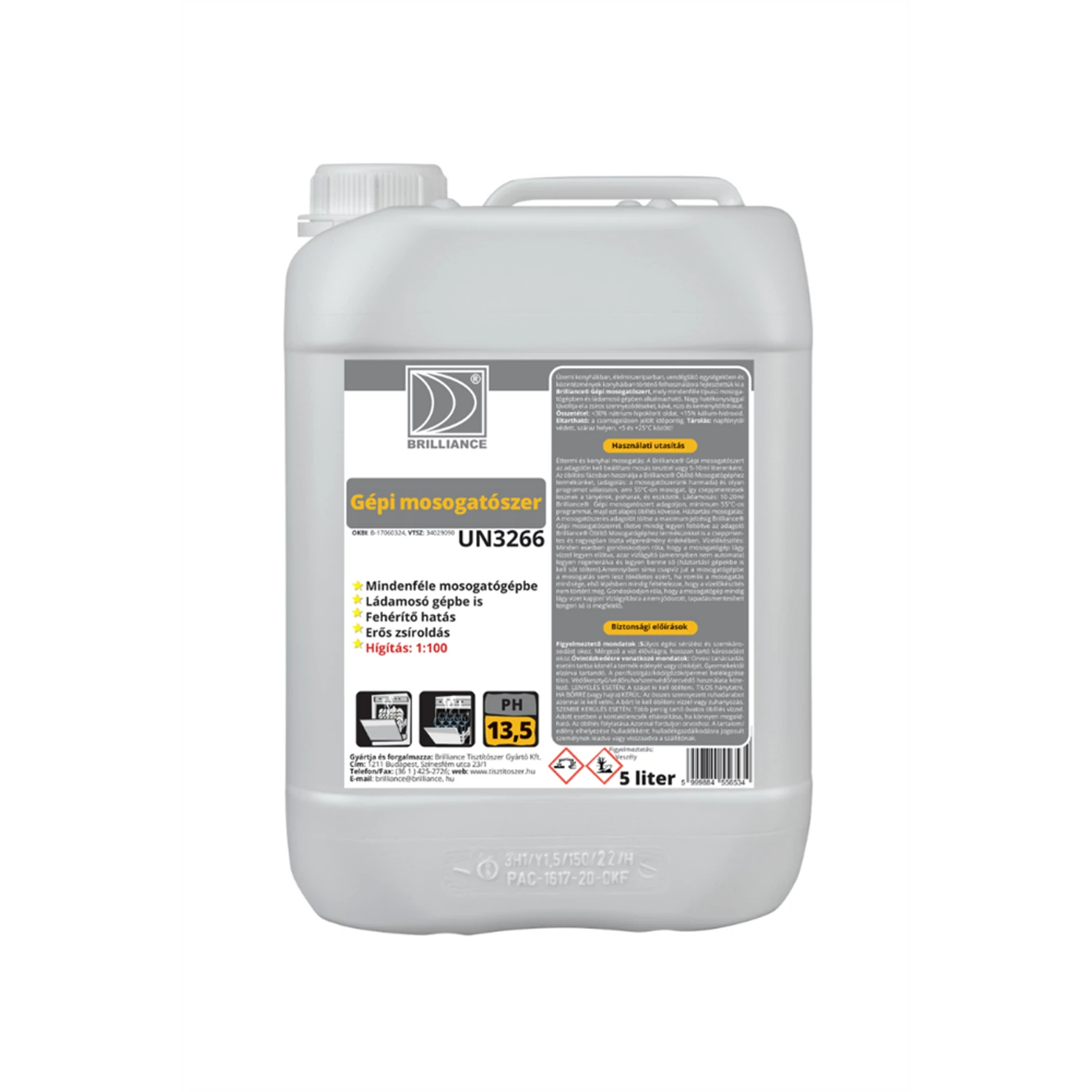 Üzemi konyhákban, élelmiszeriparban, vendéglátó egységekben és közintézmények konyháiban történő felhasználásra fejlesztettük ki a Brilliance® Gépi mosogatószert, mely mindenféle típusú mosogatógépben és ládamosógépben alkalmazható. Nagy hatékonysággal távolítja el a zsíros szennyeződéseket. Fehérítő hatás | Erős zsíroldás | Hígítás: 1:100 GHS piktogram: Figyelmeztetés: Veszély Figyelmeztető mondatok: H314 Súlyos égési sérülést és szemkárosodást okoz, H411 Mérgező a vízi élővilágra, hosszan tartó károsodást okoz. Kiszerelés: 5 liter / kanna Mosogatószer 5 liter gépi Brilliance termék alkalmazásakor ügyeljen a biztonságra! Használat előtt mindig olvassa el a címkét és a használati útmutatót! Katalóguskód: 59394