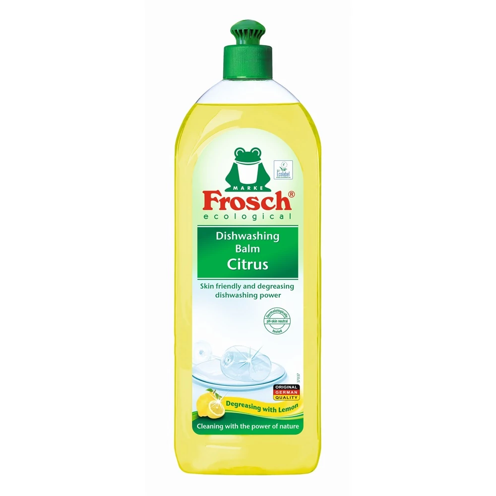 Hatékonyan tisztítja meg az edényeket a szennyeződésektől. Citromkivonattal és növényi alapú felületaktív anyagokkal készült, eltávolítja a zsírt és a szennyeződéseket, és kíméletes a bőrhöz. pH-semleges, bőrgyógyászatilag tesztelt. Alkalmazás: Kiszerelés: 750 ml / flakon, 10 flakon / karton, 48 karton / raklap Szavatossági idő: 48 hónap Mosogatószer balzsam 750 ml Frosch Citrus termék alkalmazásakor ügyeljen a biztonságra! Használat előtt mindig olvassa el a címkét és a használati útmutatót! Katalóguskód: 49954 Hiteles tájékoztatás: Elkötelezettek vagyunk termékeink biztonságának garantálásáért, nyomon követjük a termékbiztonsággal kapcsolatos valamennyi európai uniós és hazai szabályozást és biztosítjuk termékeink azoknak történő megfelelését. Az EU 2023/988-as számú Általános Termékbiztonsági Rendeletét (GPSR) is alkalmazzuk, így ha a termékeink biztonságát illetően fogyasztóként kérdése, észrevétele van, vagy esetleg balesetről van tudomása, kérjük, írja meg nekünk.
