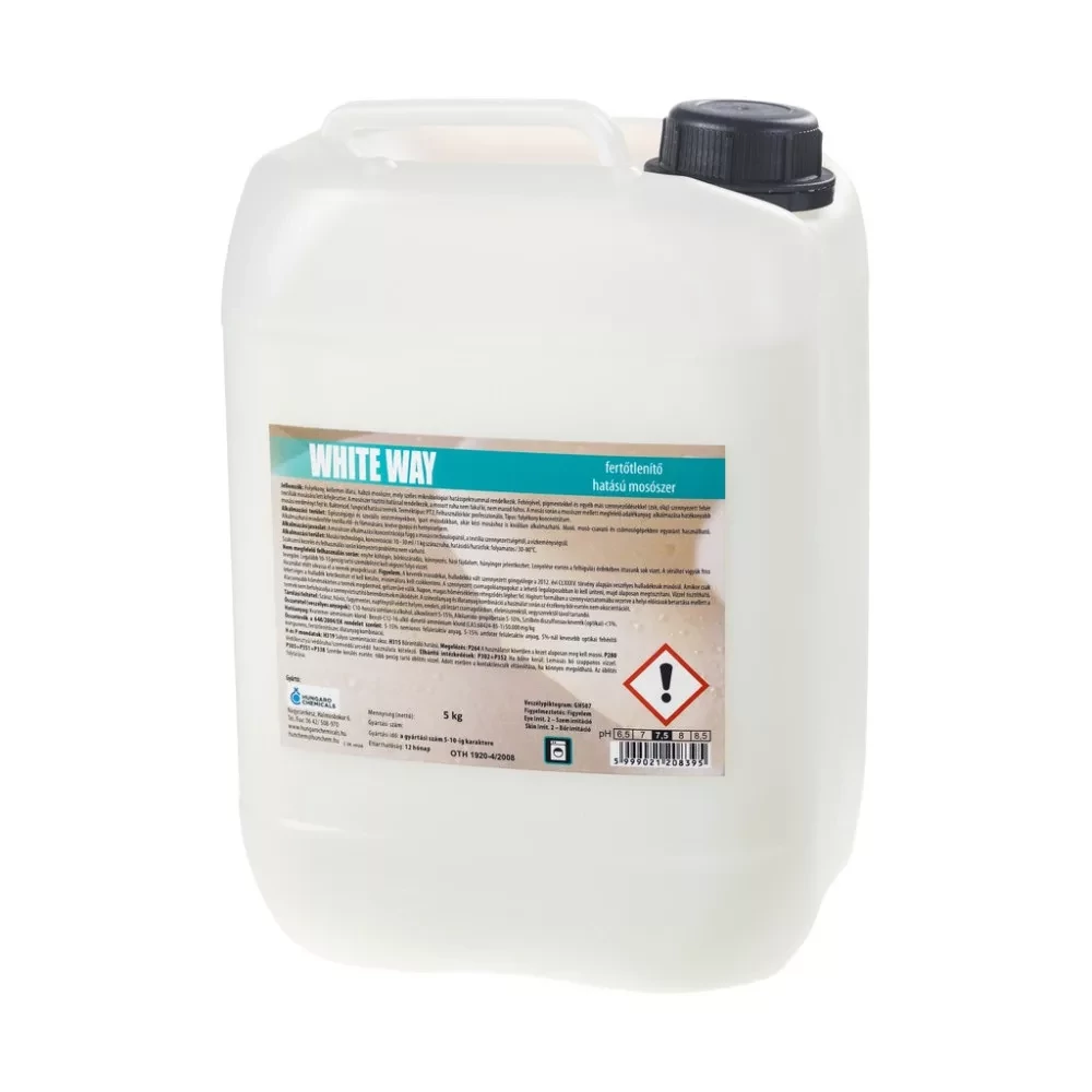 Folyékony, kellemes illatú, habzó mosószer, mely széles mikrobiológiai hatásspektrummal rendelkezik. Fehérjével, pigmentekkel és egyéb más szennyeződésekkel (zsír, olaj) szennyezett fehér és színtartó textíliák mosására lett kifejlesztve. A mosószer kiváló tisztító hatással rendelkezik, a mosott ruha nem fakul ki, nem marad foltos. Egészségügyi és szociális intézményekben, ipari mosodákban, háztartásokban alkalmazható mindenféle textília főmosására, kivéve gyapjú és hernyóselyem. Mosó, mosó-csavaró és csőmosógépekben egyaránt használható. Kézi mosáshoz is kiválóan alkalmazható. Alkalmazási terület: Egészségügyi és szociális intézményekben, ipari mosodákban, háztartásokban alkalmazható mindenféle textília főmosására, kivéve gyapjú és hernyóselyem. Mosó, mosó-csavaró és csőmosógépekben egyaránt használható. Kézi mosáshoz is kiválóan alkalmazható. GHS piktogram: GHS07 Figyelmeztetés: Veszély Figyelmeztető mondatok: H315 Bőrirritáló hatású. H319 Súlyos szemirritációt okoz. Szavatossági idő: 24 hónap Kiszerelés: 5 liter / kanna Mosószer 5 liter fertőtlenítő hatással fehér és színtartó ruhákhoz termék alkalmazásakor ügyeljen a biztonságra! Használat előtt mindig olvassa el a címkét és a használati útmutatót! Katalóguskód: 67521 Hiteles tájékoztatás: Elkötelezettek vagyunk termékeink biztonságának garantálásáért, nyomon követjük a termékbiztonsággal kapcsolatos valamennyi európai uniós és hazai szabályozást és biztosítjuk termékeink azoknak történő megfelelését. Az EU 2023/988-as számú Általános Termékbiztonsági Rendeletét (GPSR) is alkalmazzuk, így ha a termékeink biztonságát illetően fogyasztóként kérdése, észrevétele van, vagy esetleg balesetről van tudomása, kérjük, írja meg nekünk.