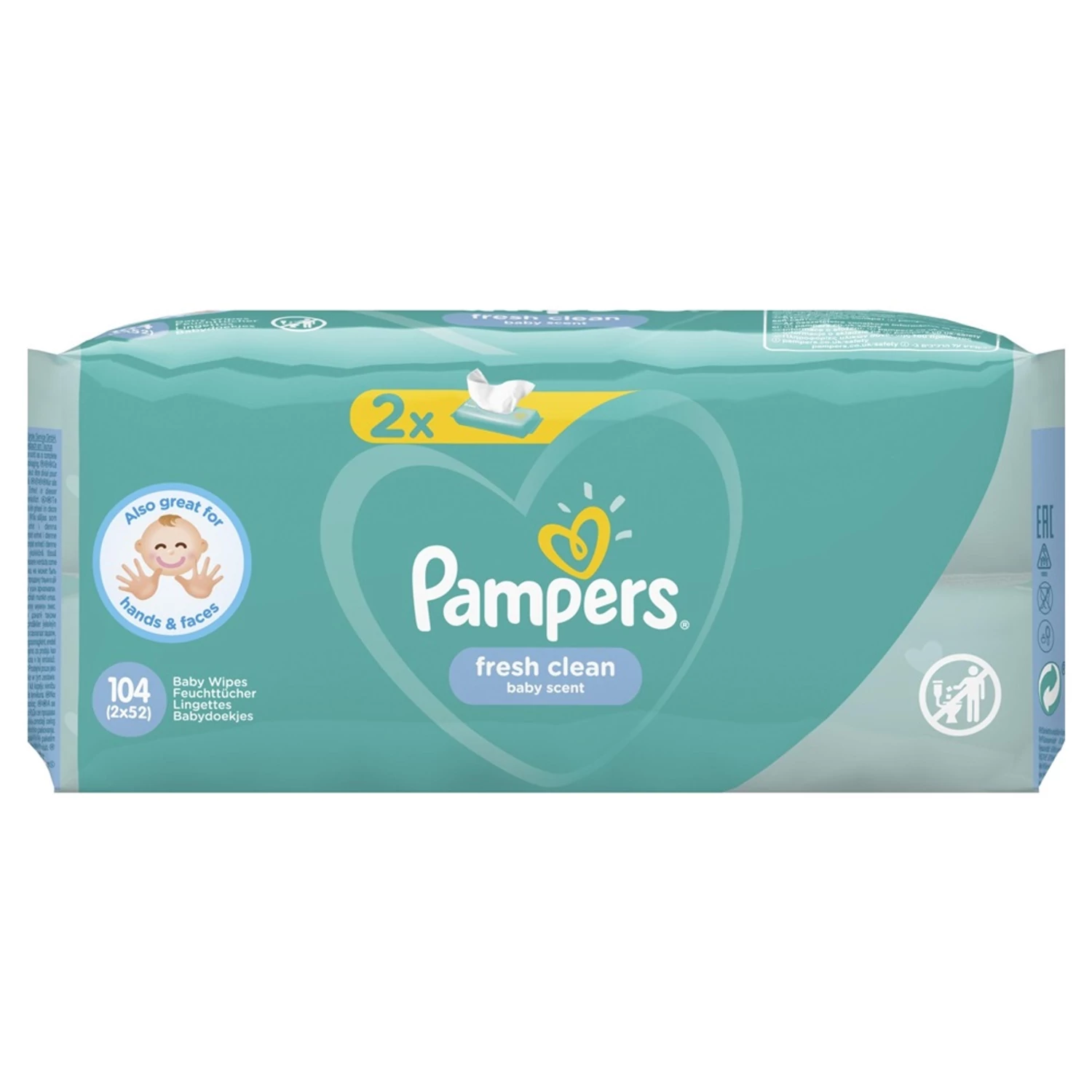 Minden Pampers törlőkendő egy különleges formulát tartalmaz, amely még a pamutnál és a víznél is kíméletesebben óvja a bőr természetes pH-értékét, így gondoskodik a kisbabák finom bőrének tisztításáról és az irritációval szembeni védelméről. A Pampers Fresh Clean nedves törlőkendő bőrgyógyászatilag tesztelt, a Skin Health Alliance bőrgyógyászainak jóváhagyásával.