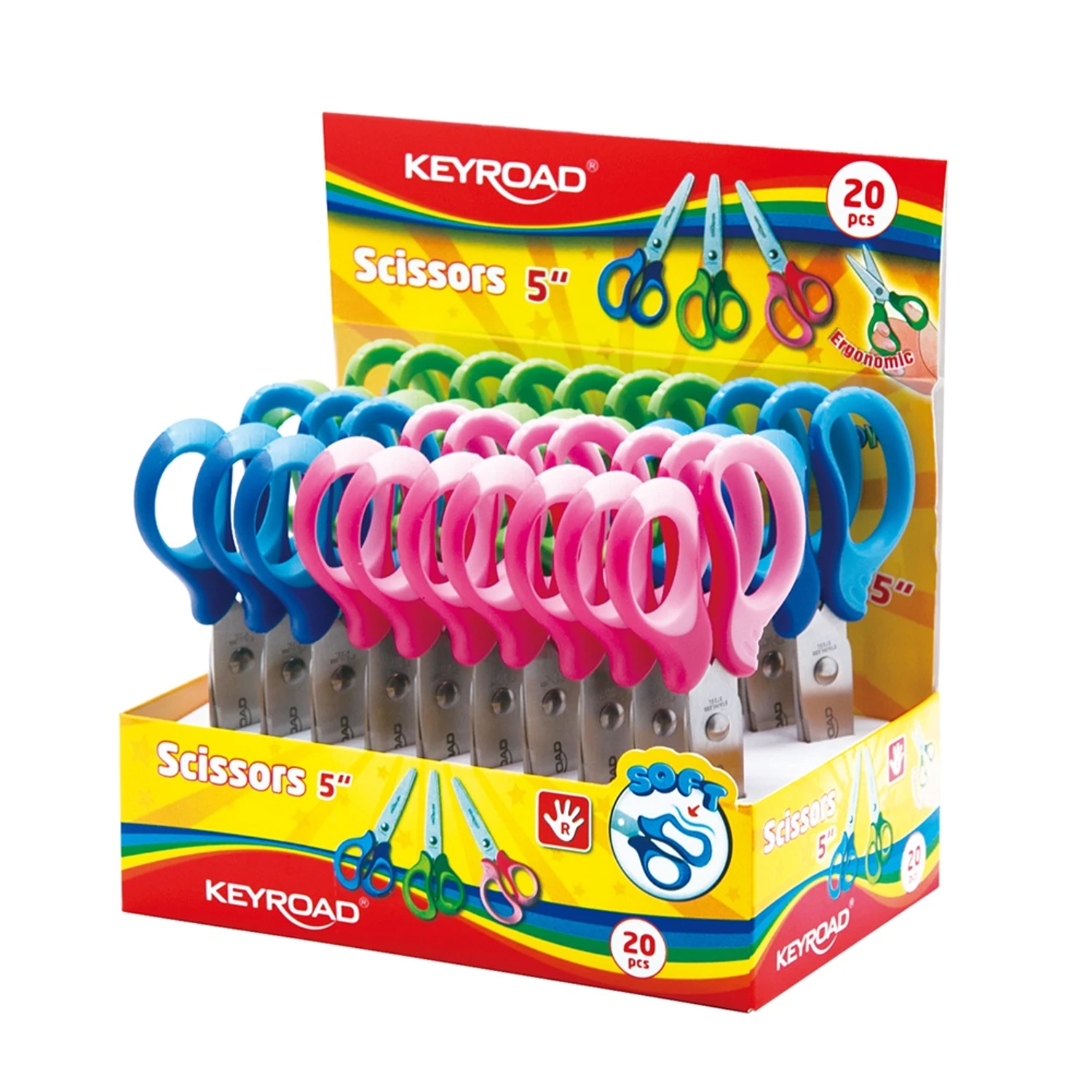 Olló 13 cm tompa fejű 20 db/display Keyroad Soft Grip vegyes színek