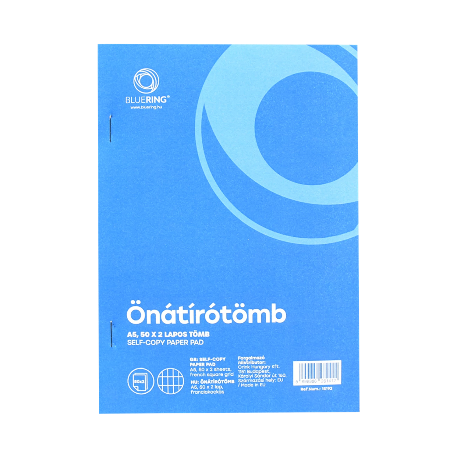 Önátíró vegykezelt papírból készült jegyzettömb 50x2 lapos kivitelben, A6, A5 ésA4 méretben. Az első példány franciakockás, míg a második (bent maradó) sima tőpéldány. 40 db/csomag. Katalóguskód: 15192 A termék irodai felhasználásra készült.