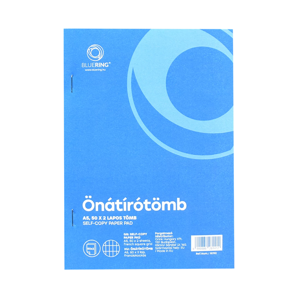 Az önátírótömbök klasszikus, mégis nélkülözhetetlen elemei az irodai és kereskedelmi munkának. A Bluering® A5-ös, 50x2 lapos franciakockás önátírótömb azok számára készült, akik napi szinten dolgoznak kézzel kitöltött bizonylatokkal, szerződésekkel, megrendelésekkel vagy jegyzőkönyvekkel. A kétlapos (másolatos) rendszer biztosítja, hogy egy írás két példányban készüljön el: az első az eredeti, a második a másolat – így nincs szükség indigóra, fénymásolásra vagy külön papírokra.