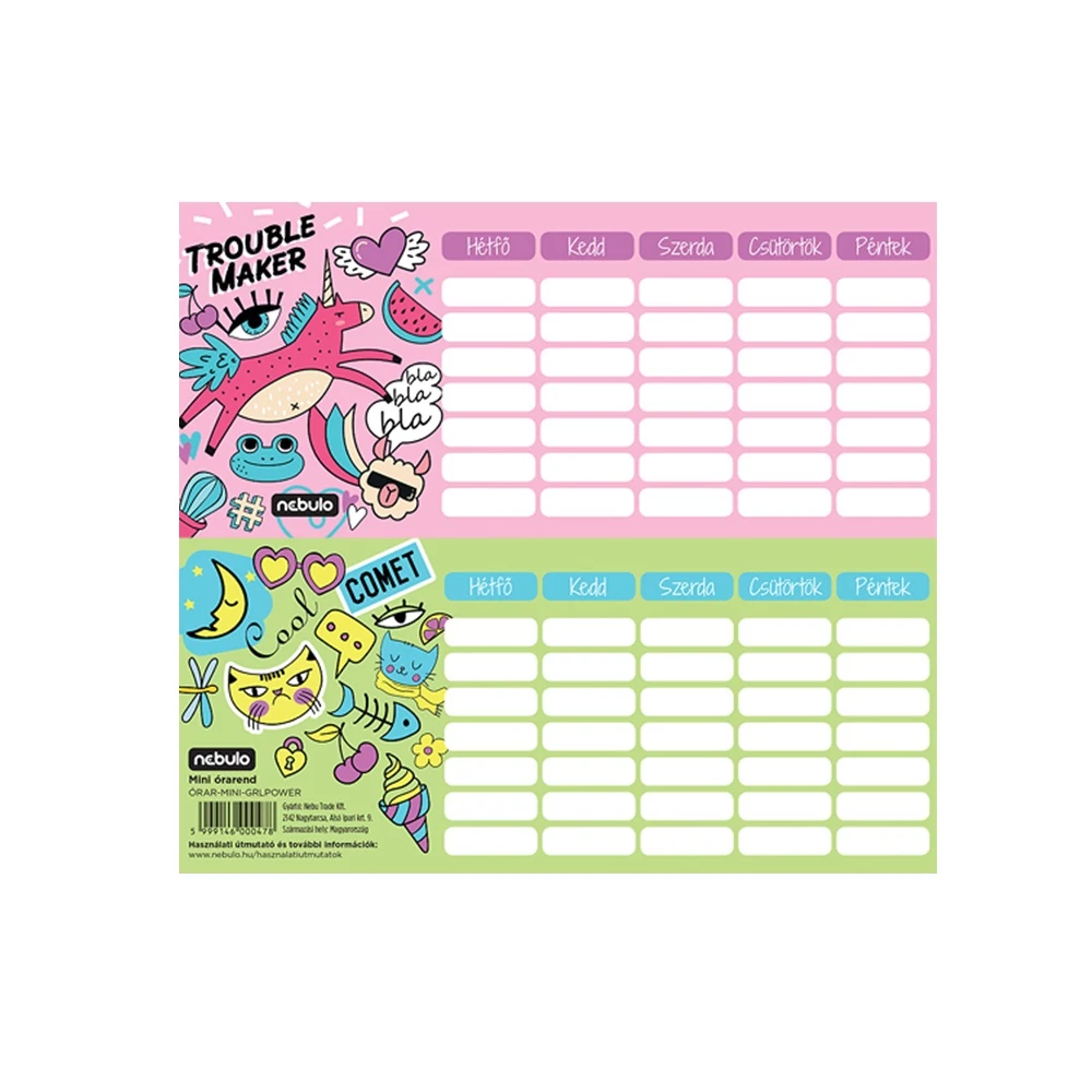 Órarend egylapos Girl Power, 25 db/csomag, Nebulo