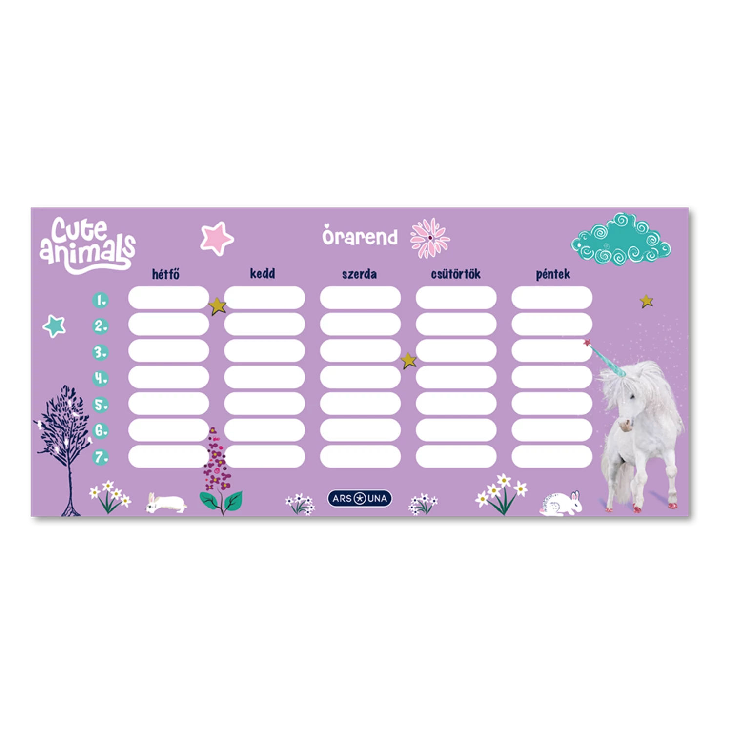Órarend egylapos lányos, Ars Una UNICORN 25db/csomag
